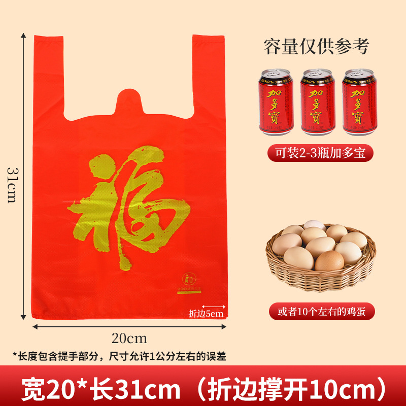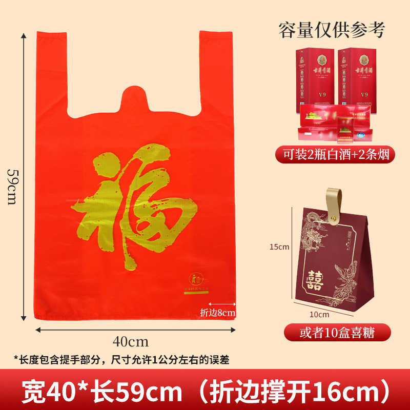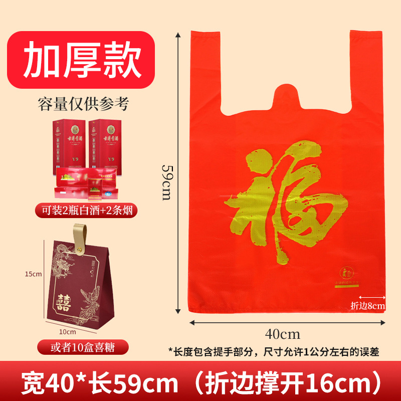 붉은 축복 가방 두꺼운 비닐 봉투 결혼식 축하 보름달 휴대용 포장 가방 조끼 가방