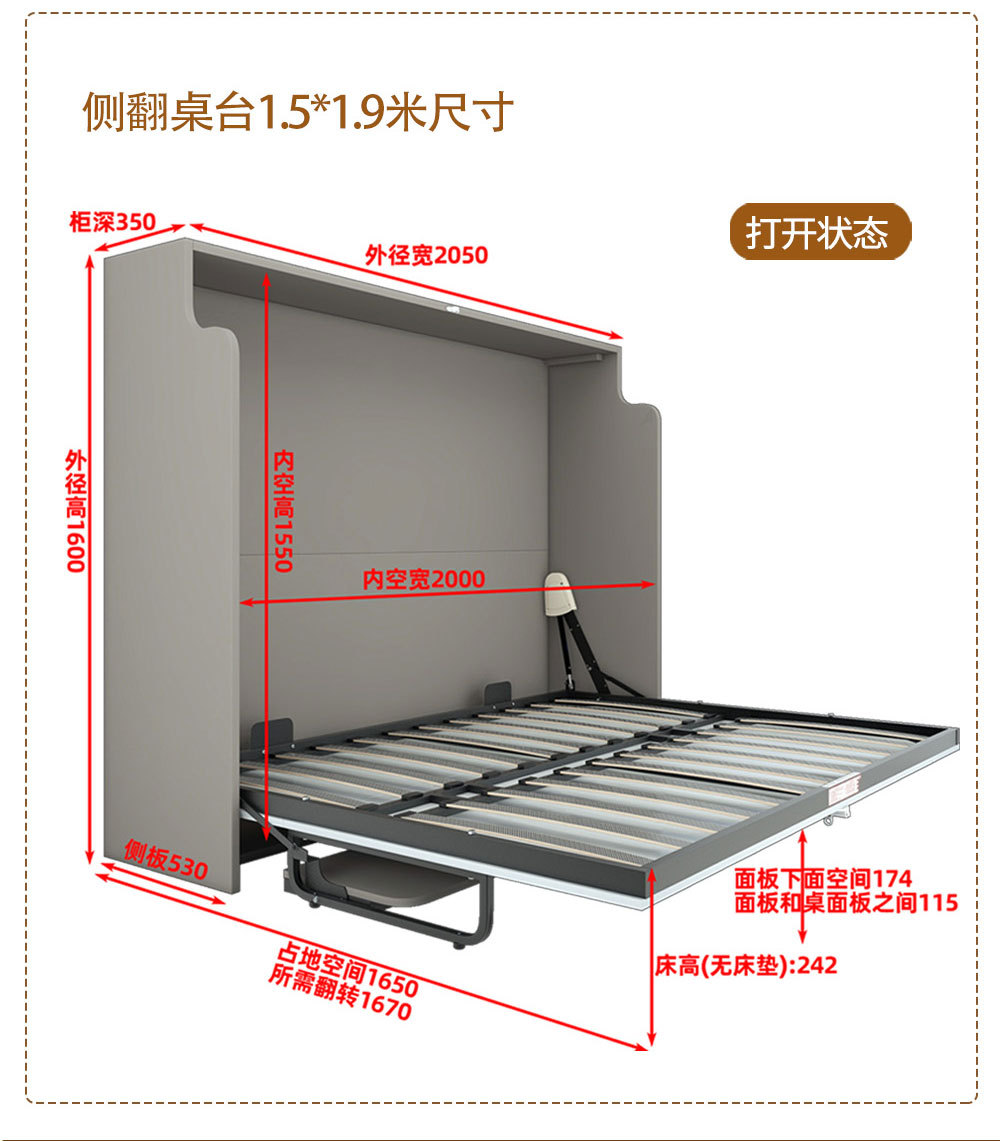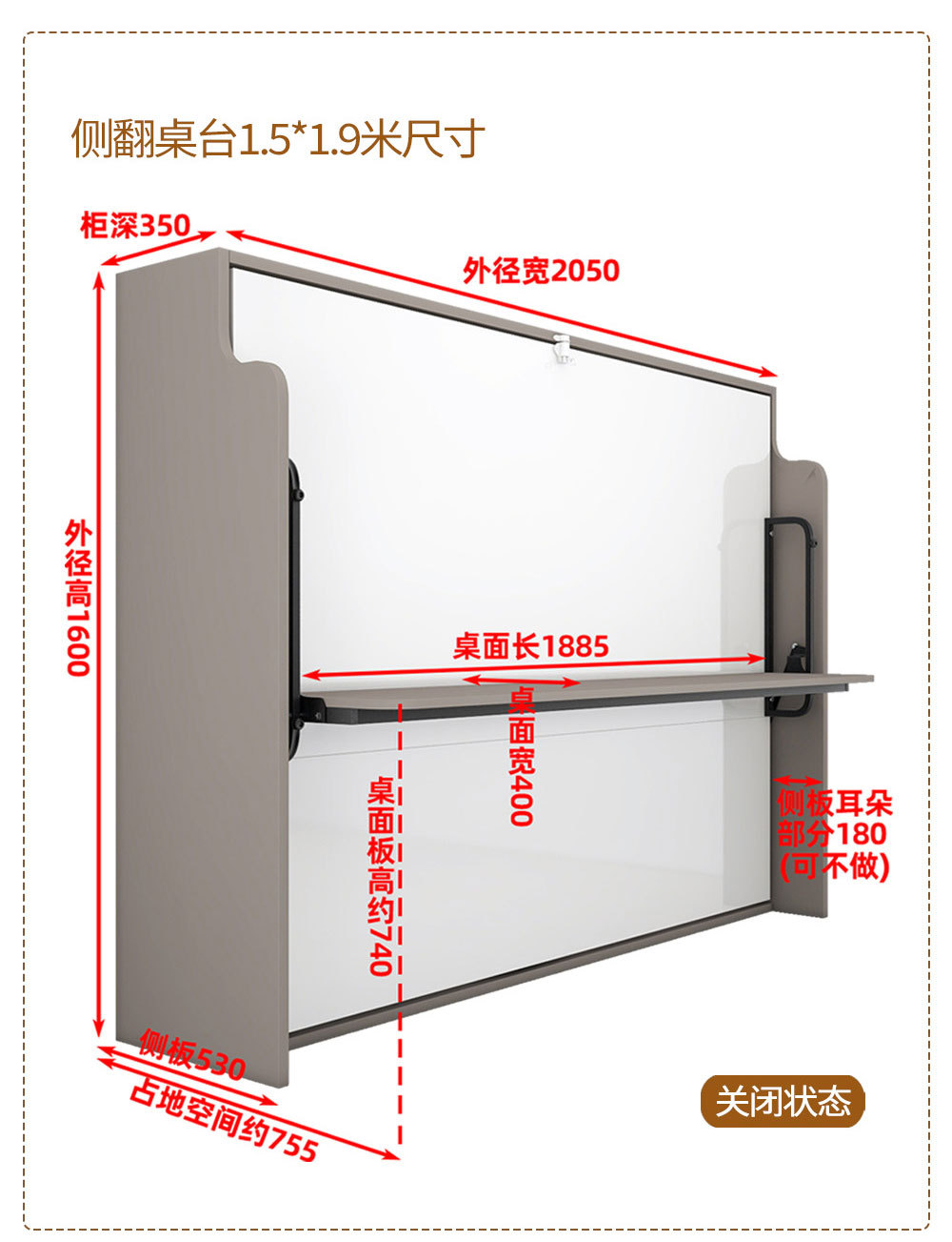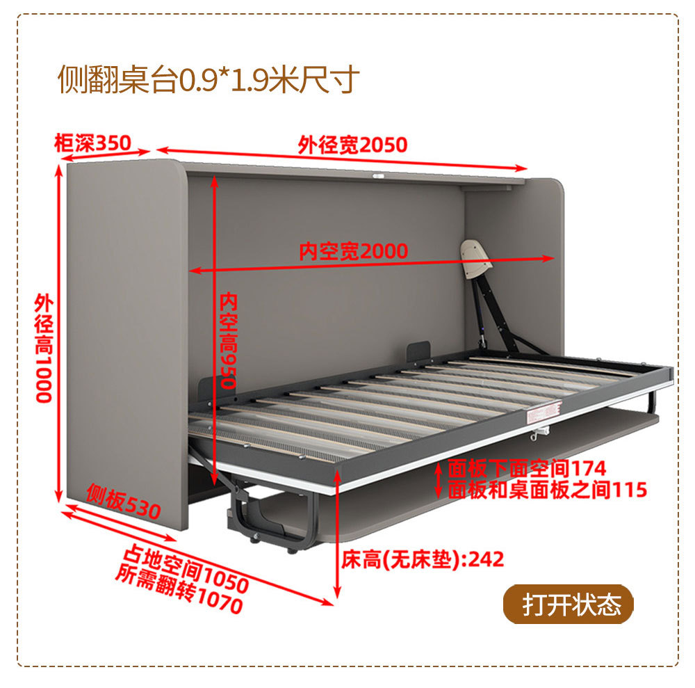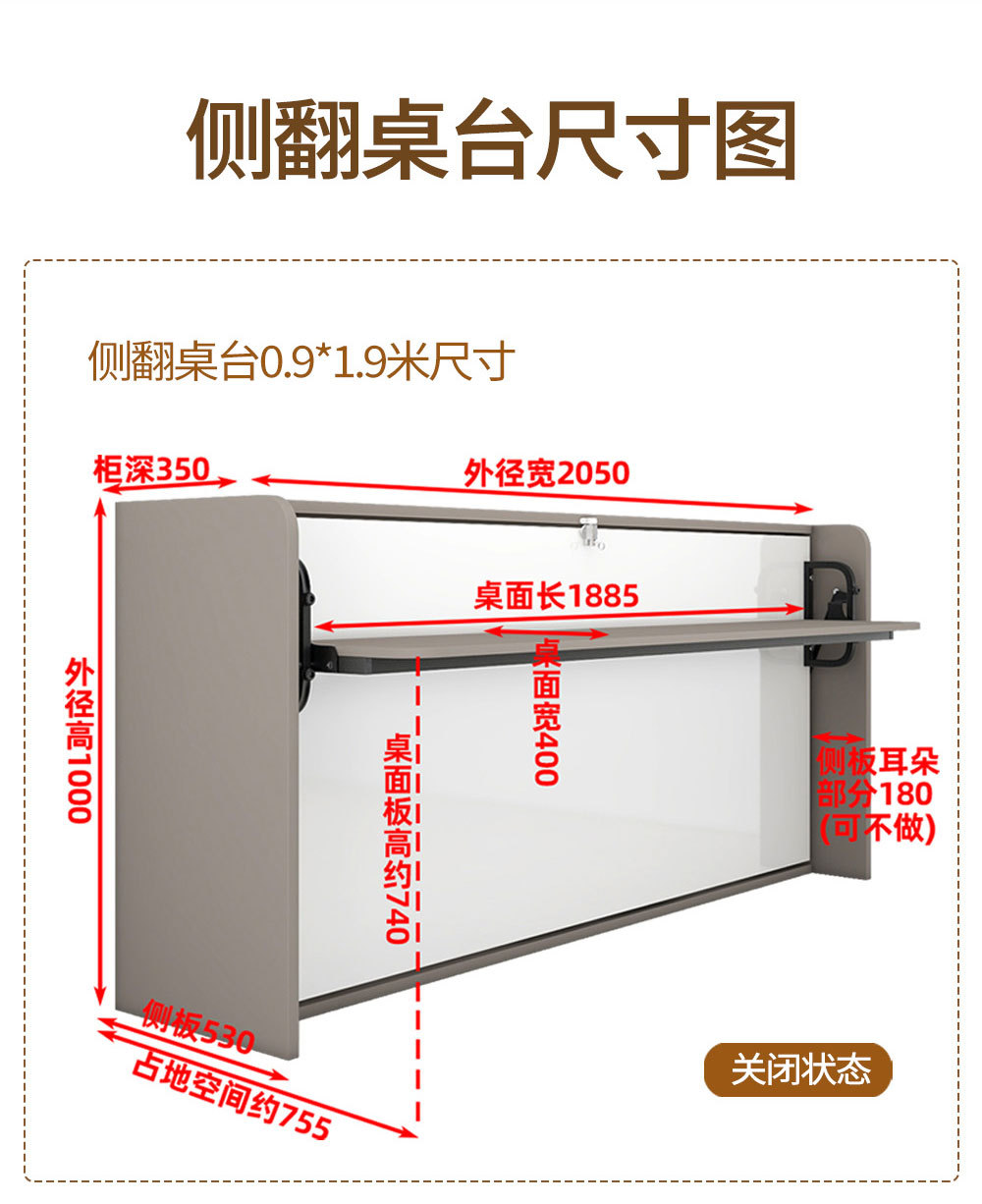 메피 침대, 접이식 사이드 플립 책상 침대, 숨김 수납 벽걸이 침대, 다기능 접이식 침대, 싱글 침대, 소형 아파트용