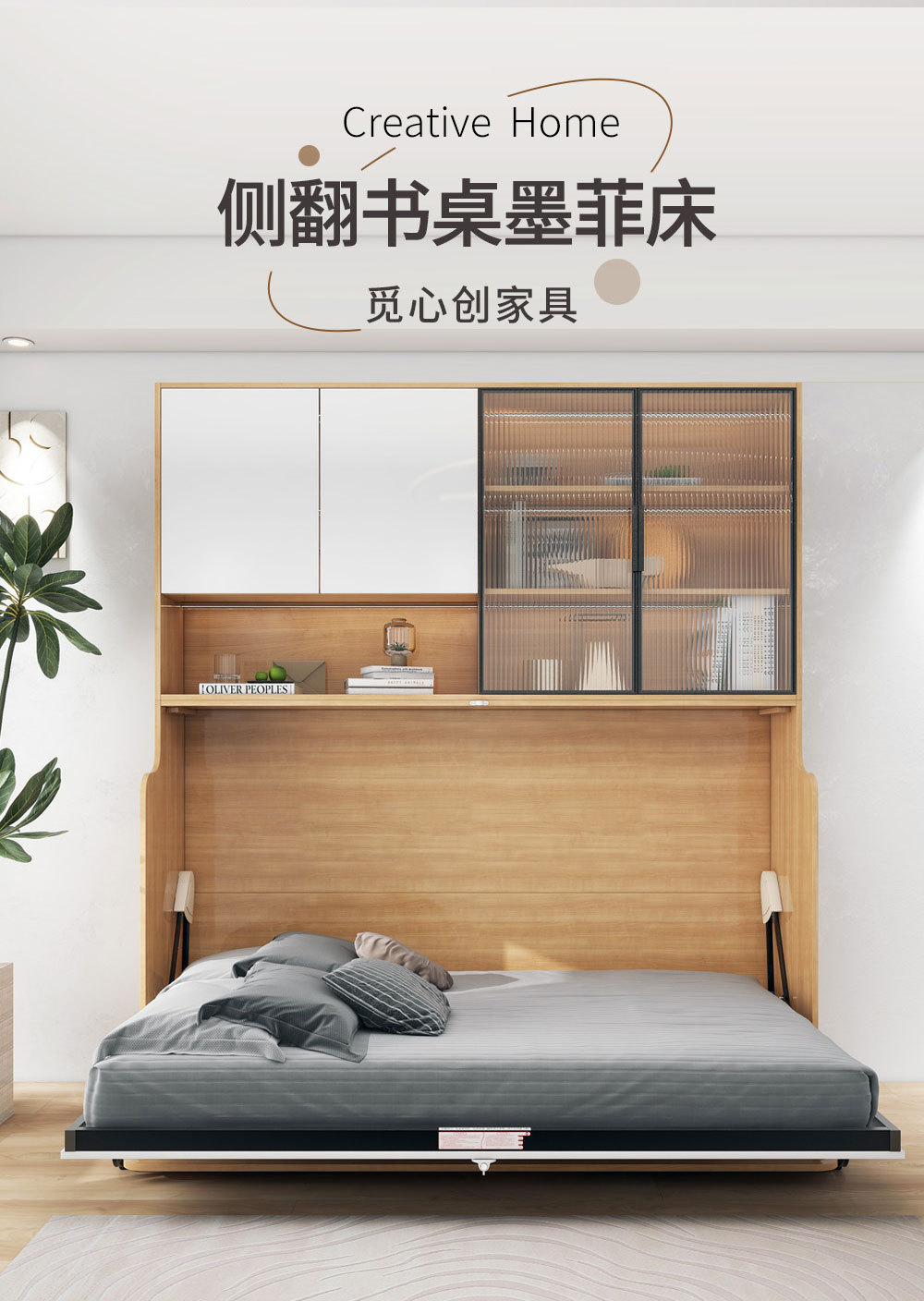 메피 침대, 접이식 사이드 플립 책상 침대, 숨김 수납 벽걸이 침대, 다기능 접이식 침대, 싱글 침대, 소형 아파트용스토어 가기