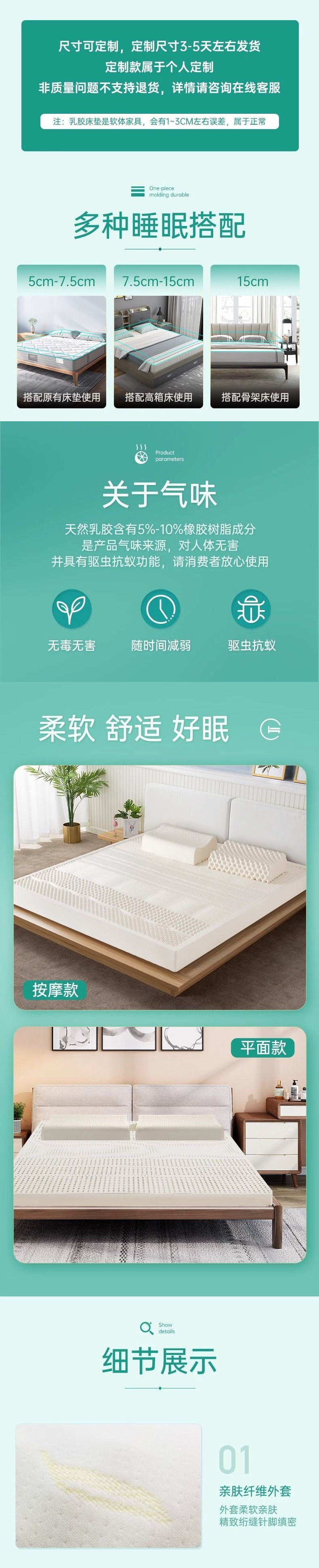 뜨거운 판매 태국 천연 라텍스 매트리스 일체형 순수 얇은 부드러운 쿠션 가정 학생 싱글 더블 매트리스스토어 가기