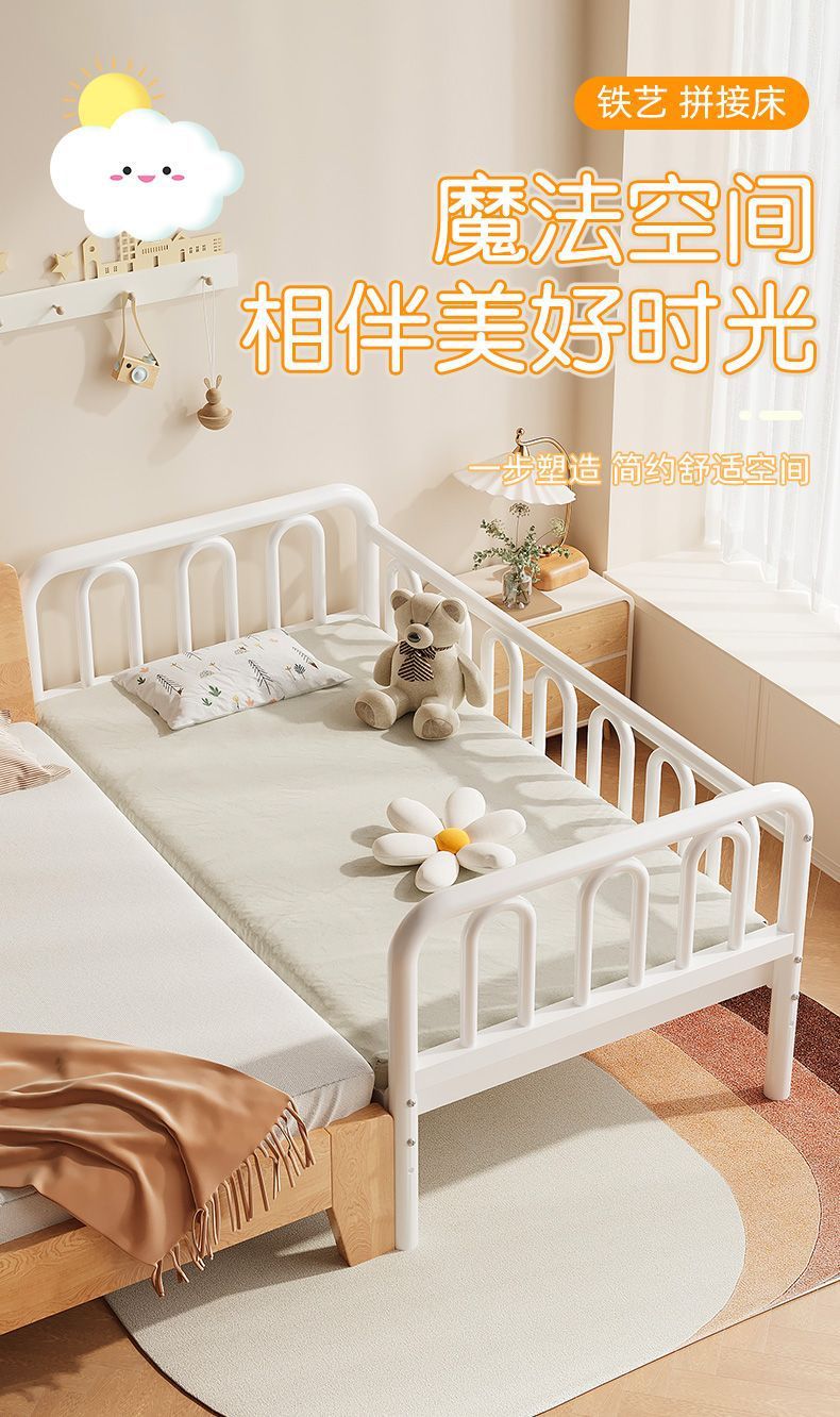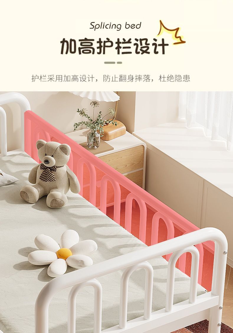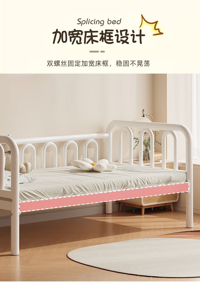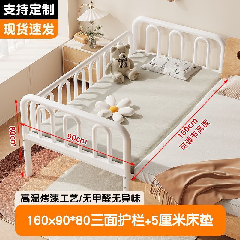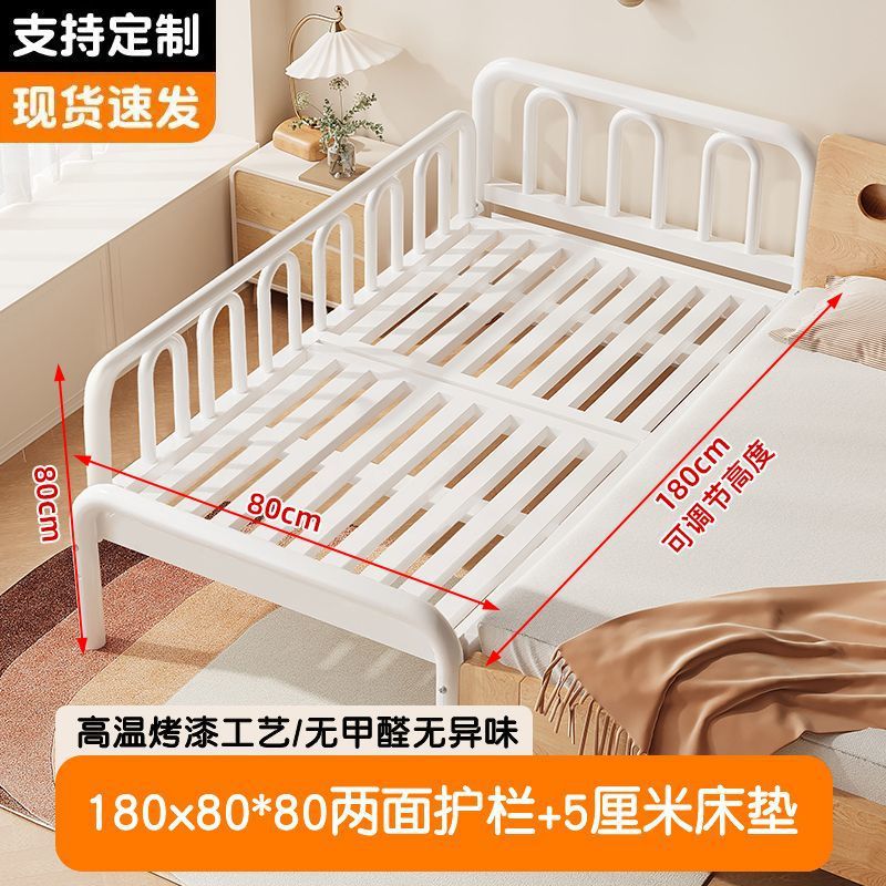 단철 어린이 침대 접합 침대 가드 레일이있는 유아용 침대 소년 스틸 프레임 싱글 침대 확대 침대 옆