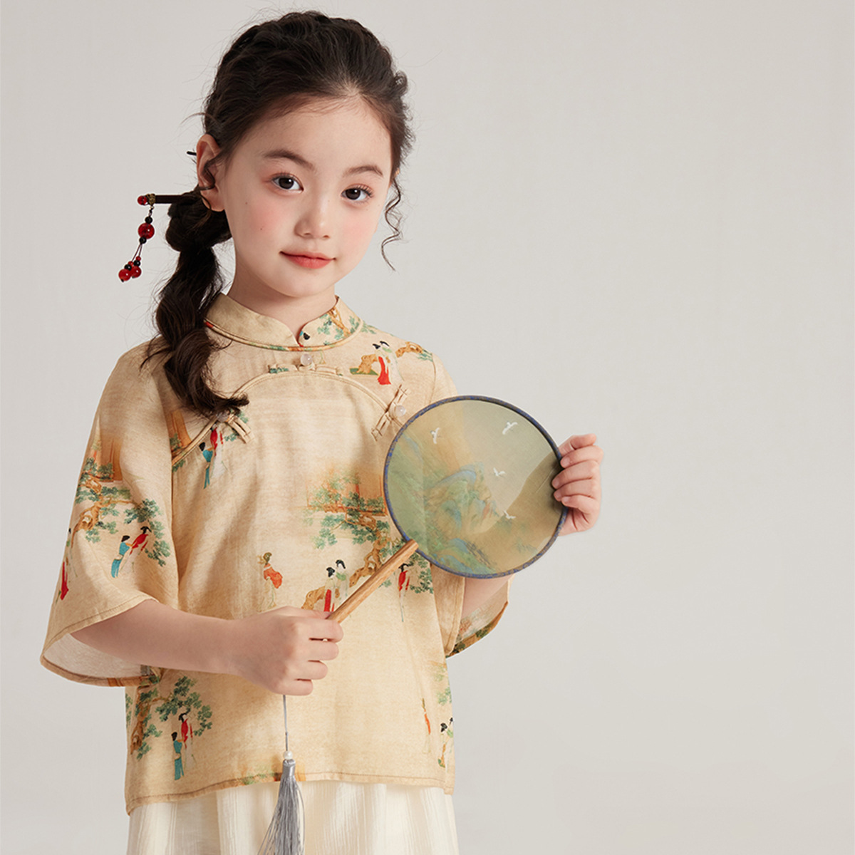 2024 여름 새로운 스타일 중국 스타일 셔츠 탑 쉬폰 바지 정장 소녀 복고풍 스타일 셔츠 스커트
