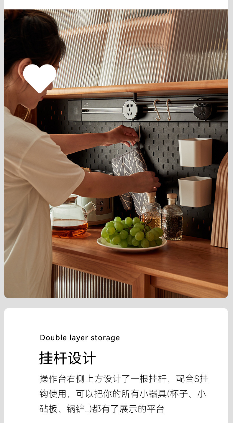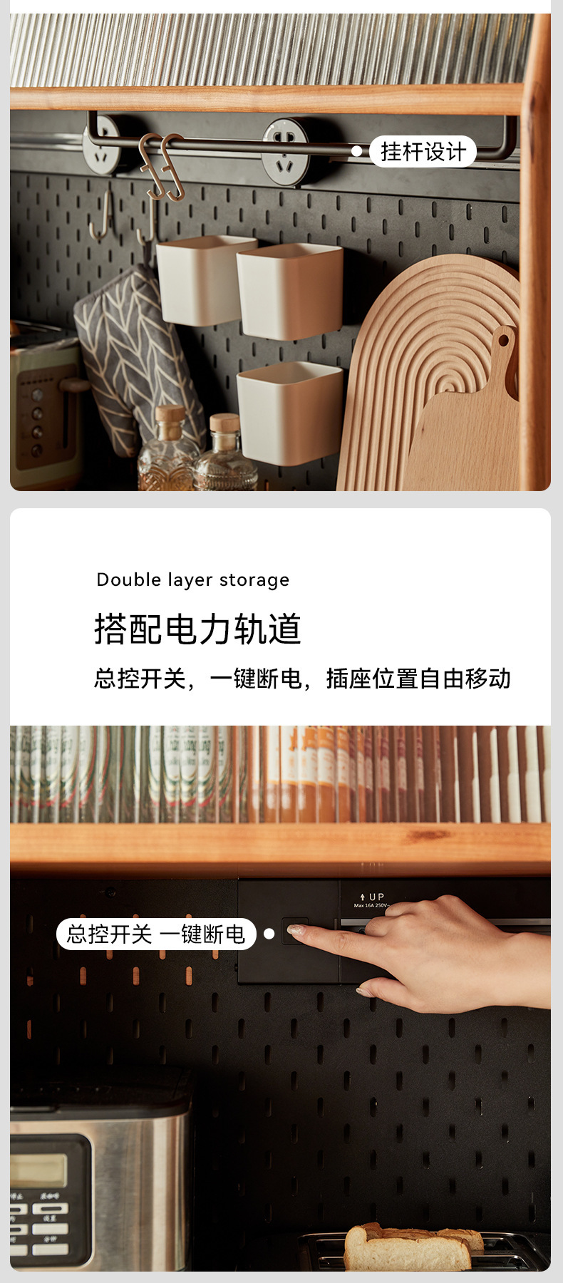• 벚나무, 길이 130cm, 상하 캐비닛 세트 + 타공판 전동 트랙
