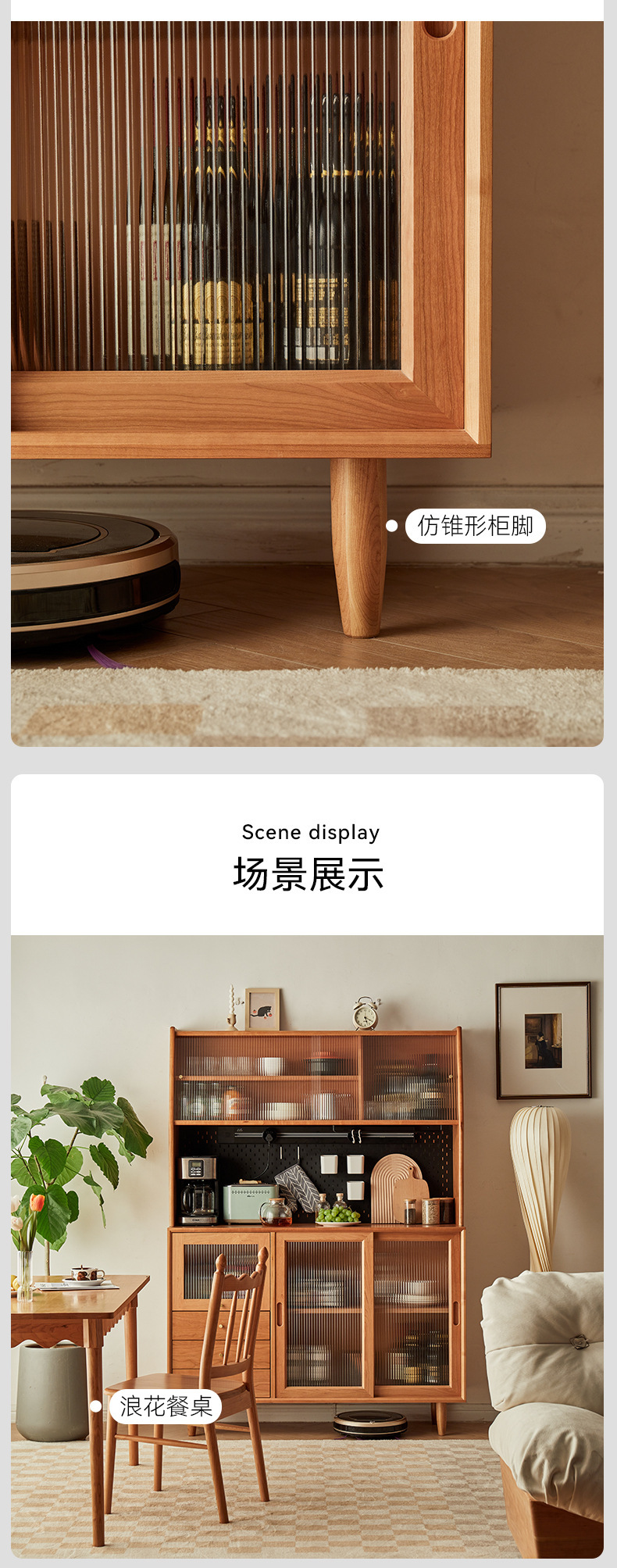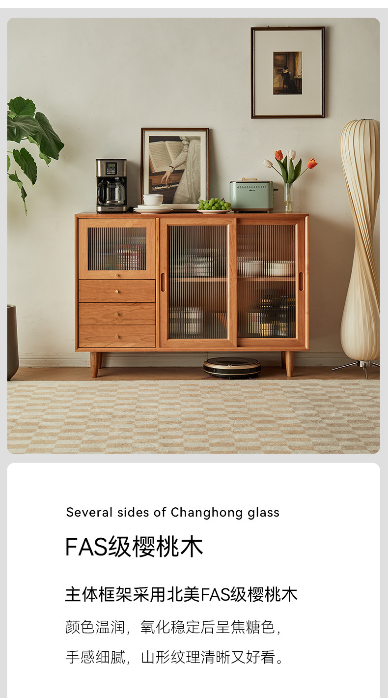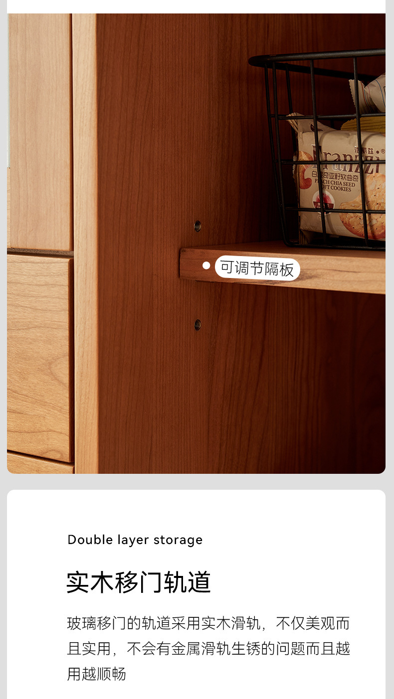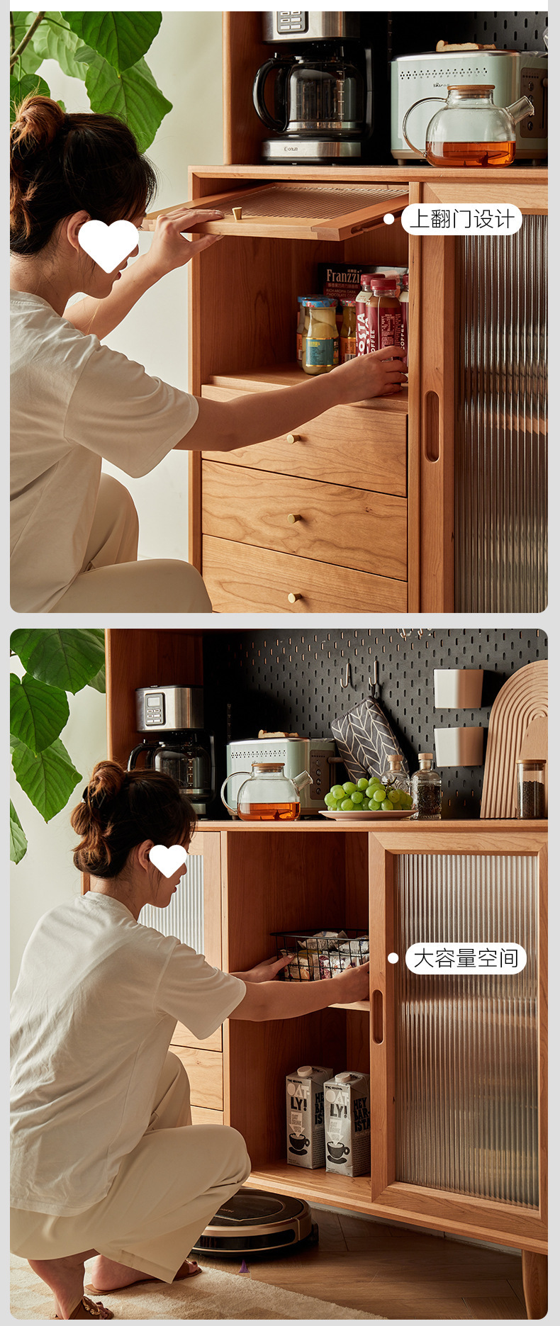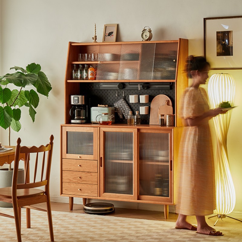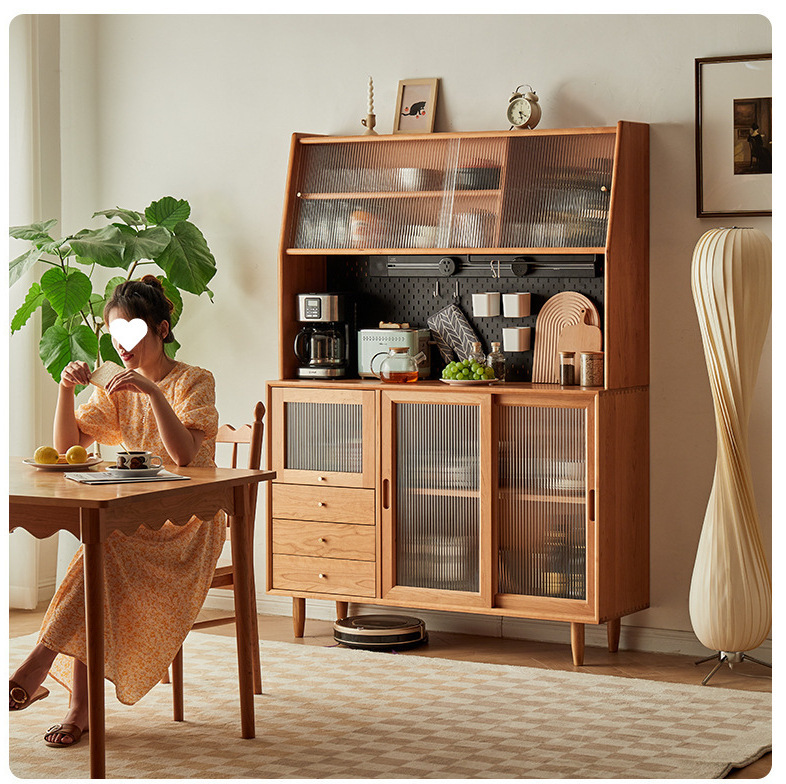 주방 거실을위한 맞춤형 북유럽 단단한 나무 찬장 슬라이딩 도어 보관 캐비닛 일본 체리 나무 통나무 찬장