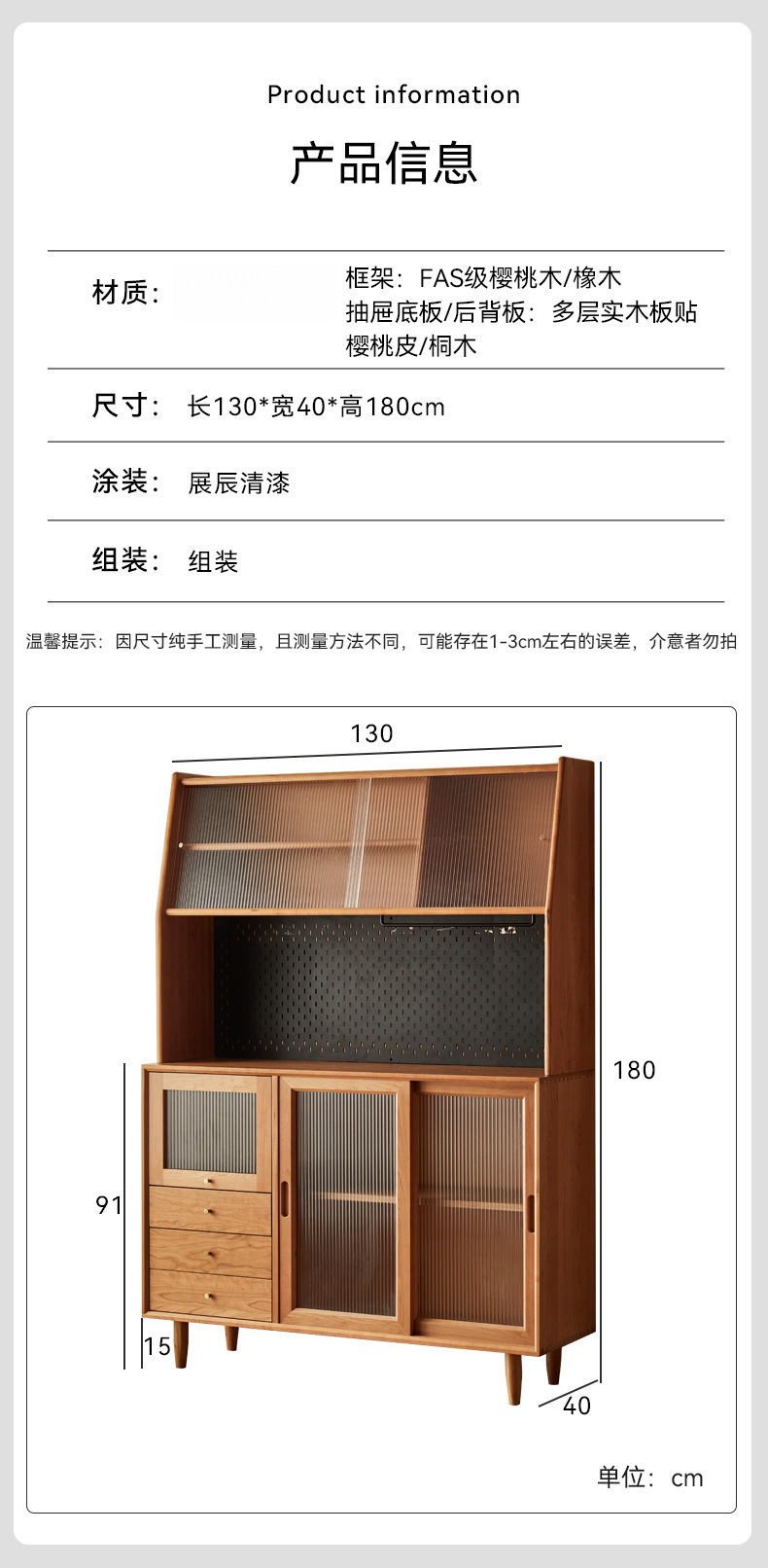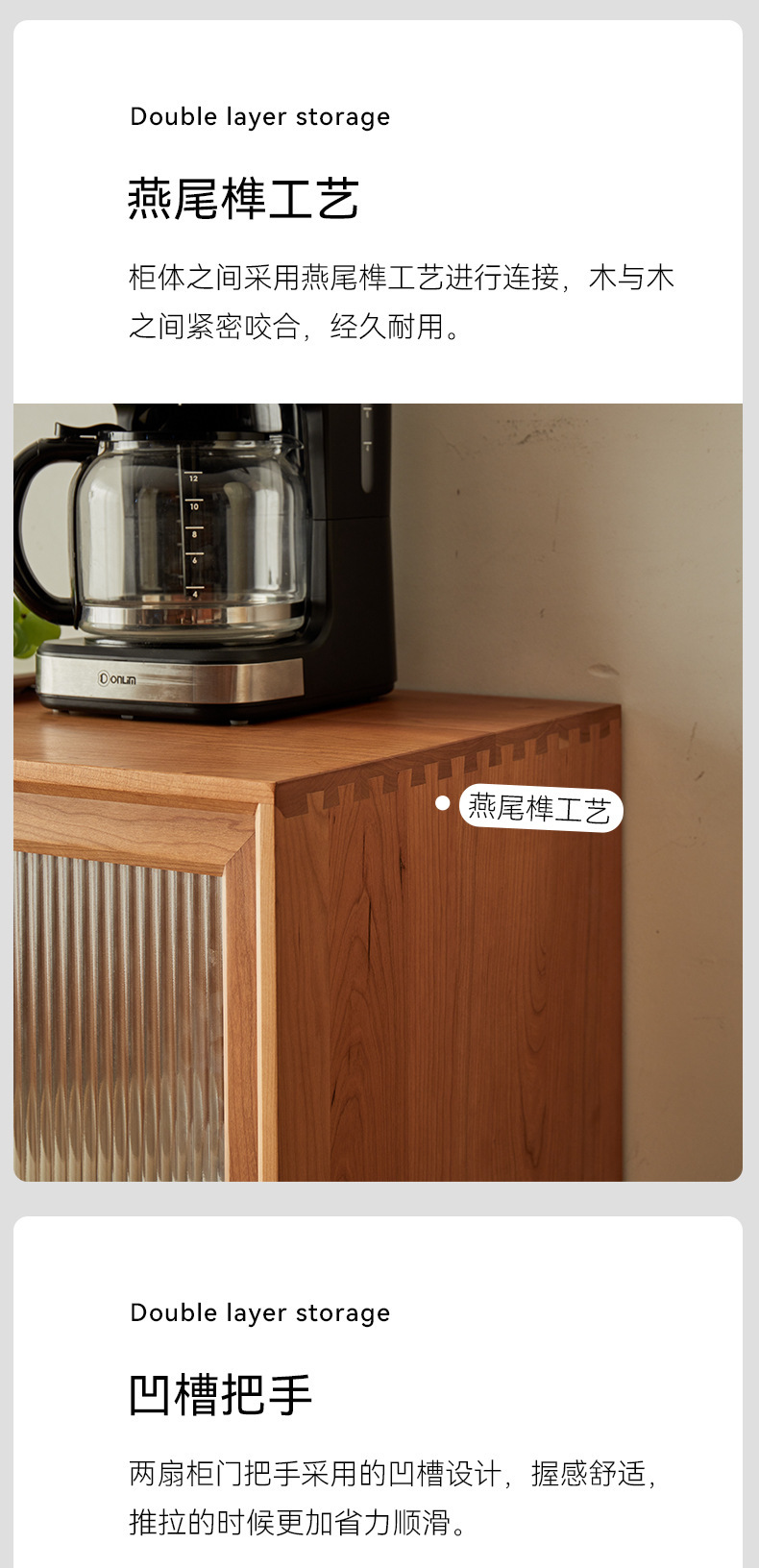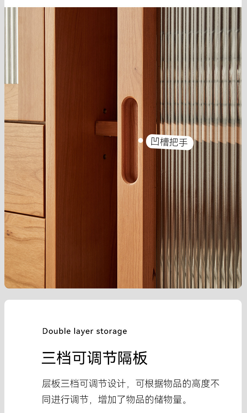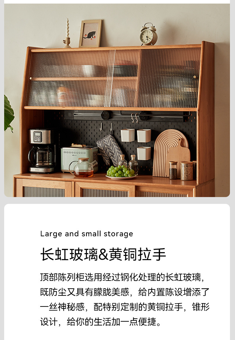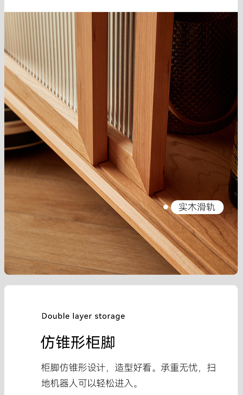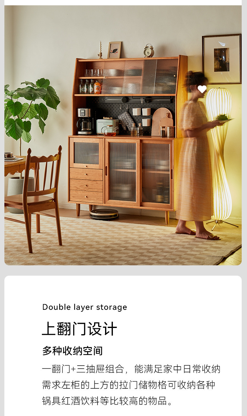주방 거실을위한 맞춤형 북유럽 단단한 나무 찬장 슬라이딩 도어 보관 캐비닛 일본 체리 나무 통나무 찬장