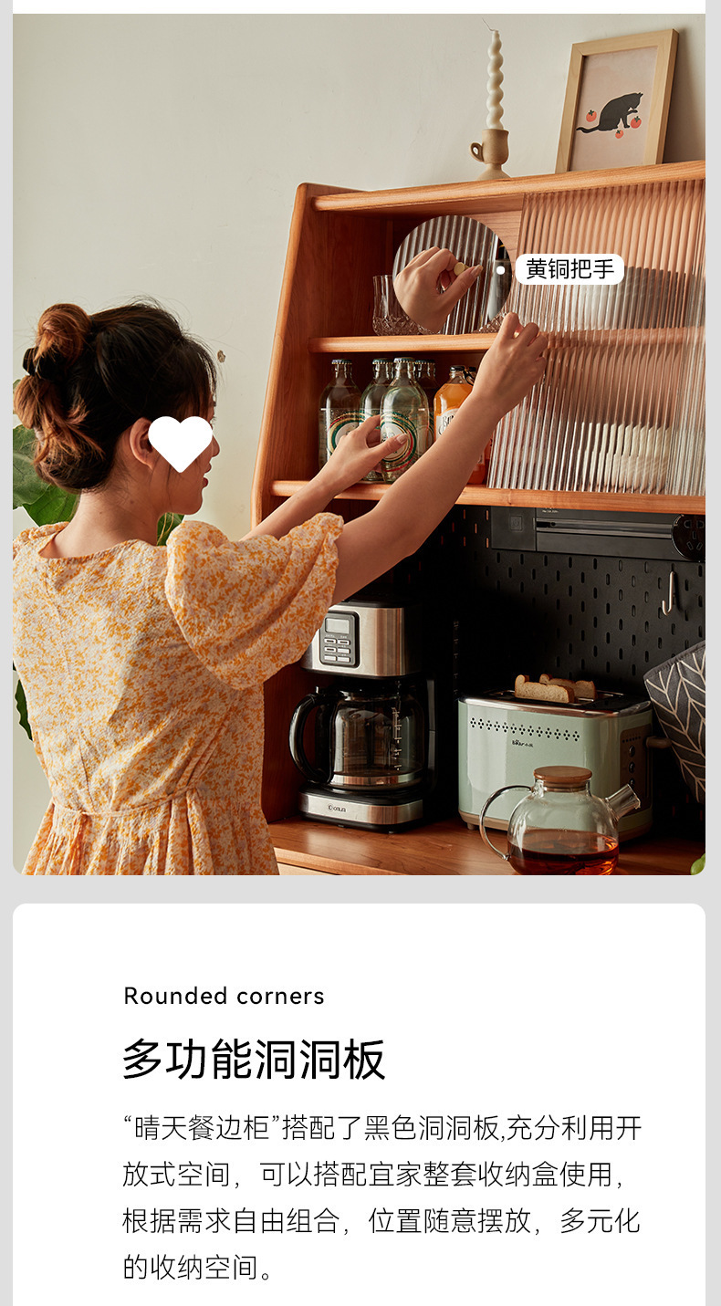주방 거실을위한 맞춤형 북유럽 단단한 나무 찬장 슬라이딩 도어 보관 캐비닛 일본 체리 나무 통나무 찬장스토어 가기