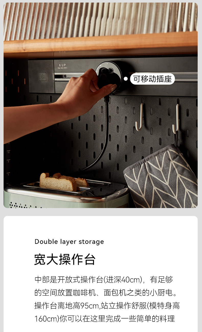 • 벚나무, 길이 85cm, 상하 캐비닛 세트 + 타공판 전동 트랙