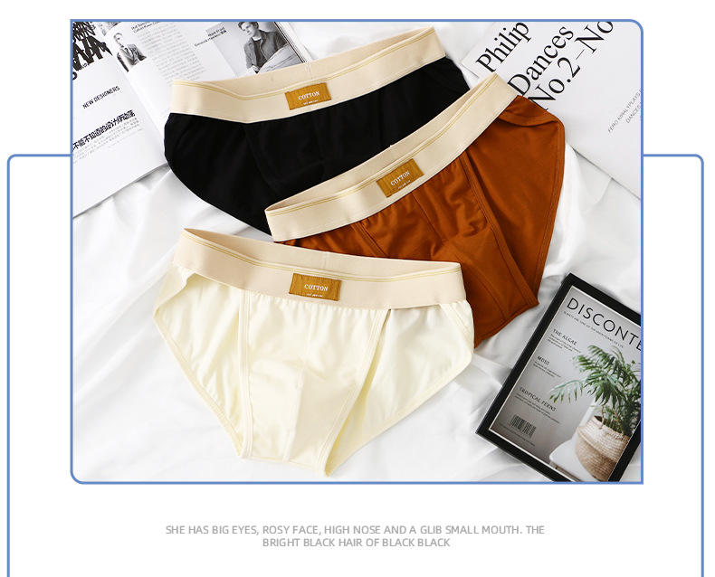 남성 속옷 남성 순면 편안하고 통기성이 뛰어나며 피부 친화적인 팬티 패션 트렌드 심플 솔리드 컬러 미드 웨이스트 트라이앵글 반바지