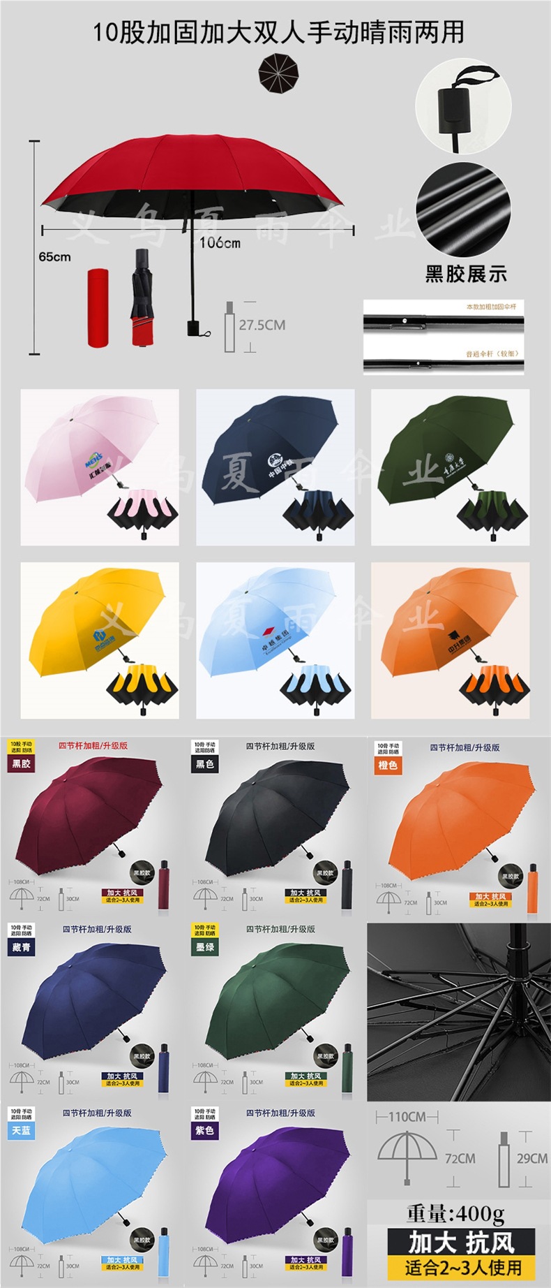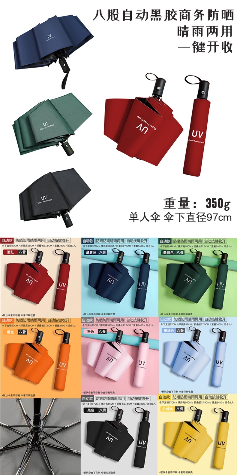 • 50% off 우산 커버가 있는 8본, 10가지 색상 사용 가능, 완전 정전