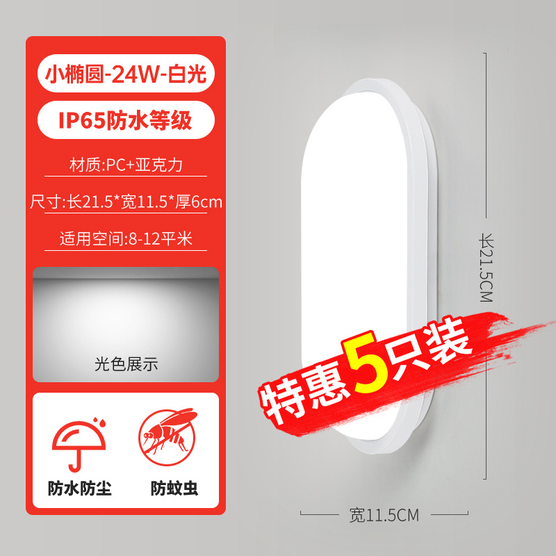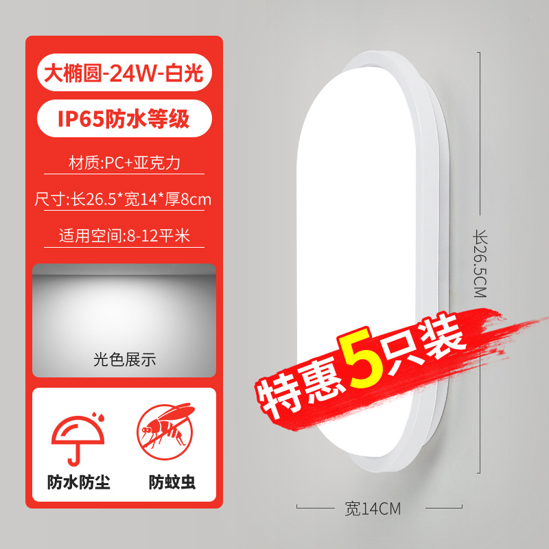 • IP65 방수 대형 타원형 24W 백색광(5개 팩)