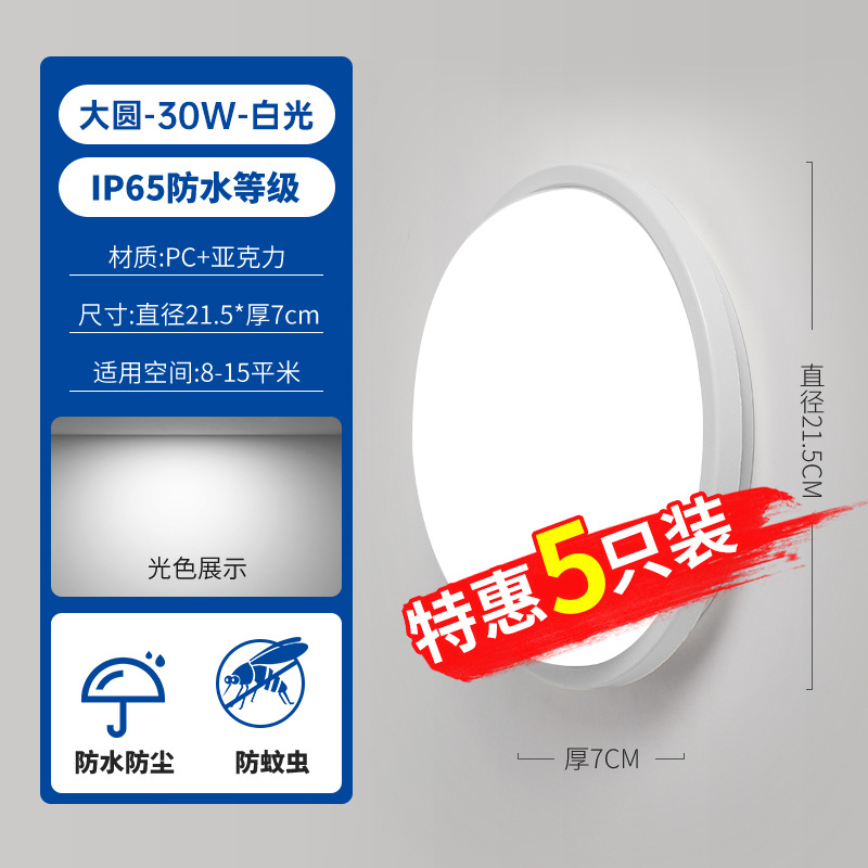 • IP65 방수 대형 원형 30W 백색광(5개 팩)