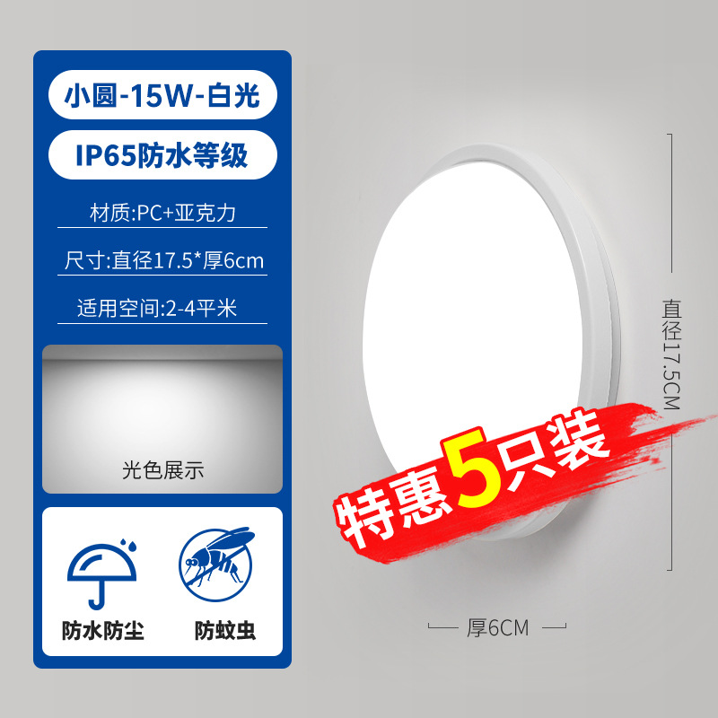 • IP65 방수 소형 원형 15W 백색광(5개 팩)