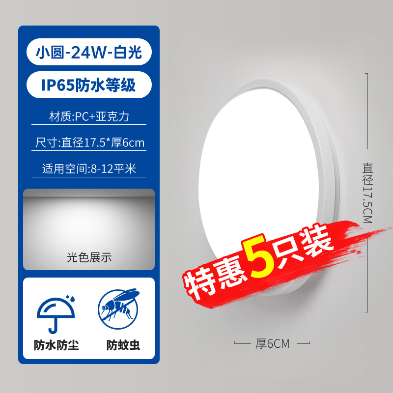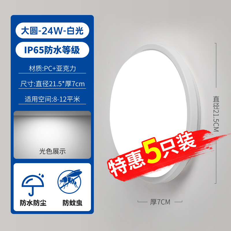 • IP65 방수 대형 원형 24W 백색광(5개 팩)