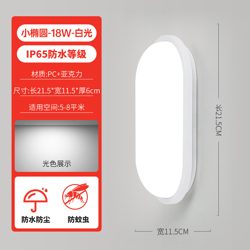 • IP65 방수 소형 타원형 18W 백색광(5개 팩)