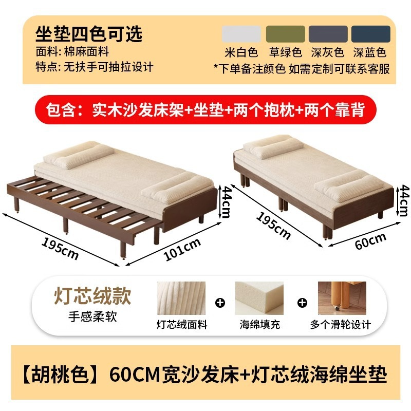 작은 아파트 학습실을 위한 접이식 침대, 접이식 소파 침대, 원목 이중 목적 더블 싱글 좌석 및 침대, 슬라이딩 침대