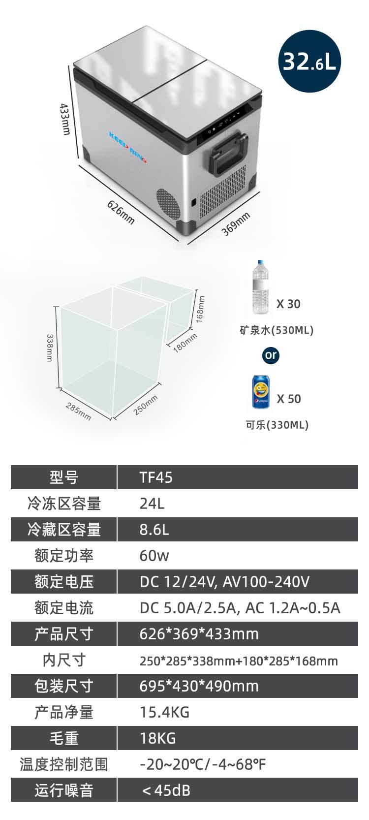 소형 냉장고 35리터, 이중 도어, 분할형, 12V/24V, 자동차/트럭용 냉장/냉동, 가정용 겸용 차량용 냉동고