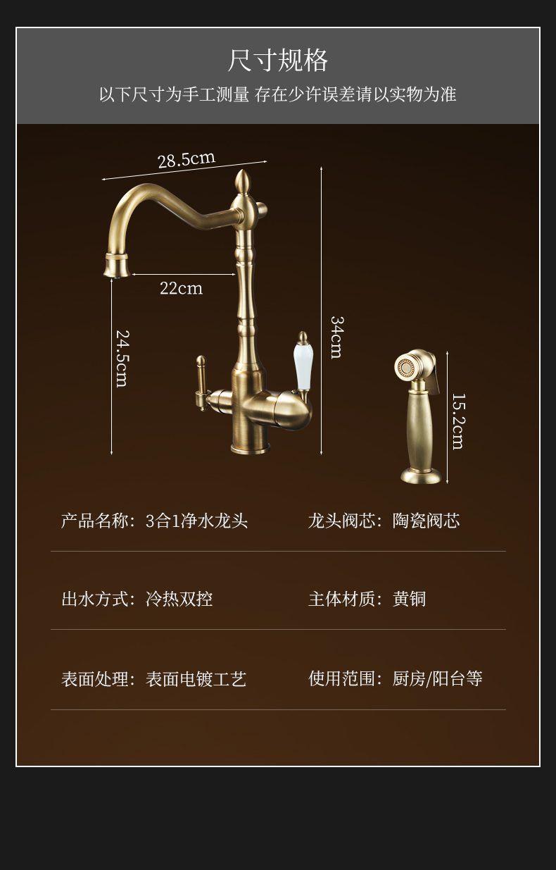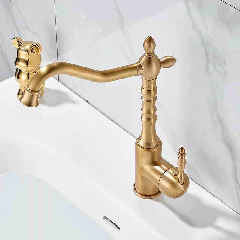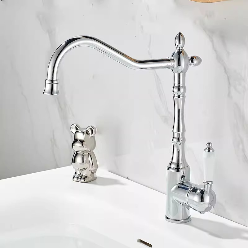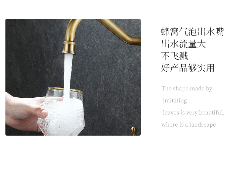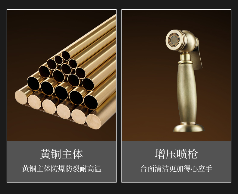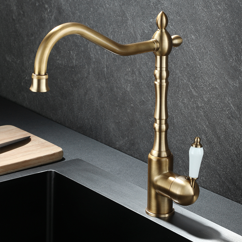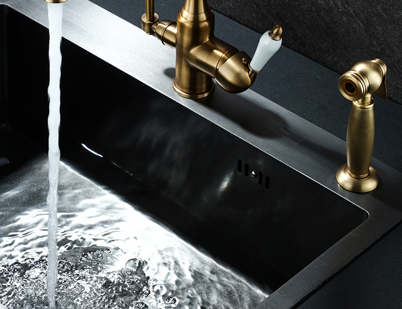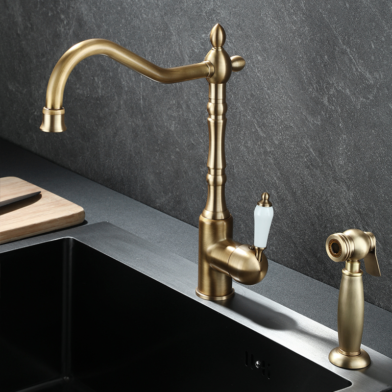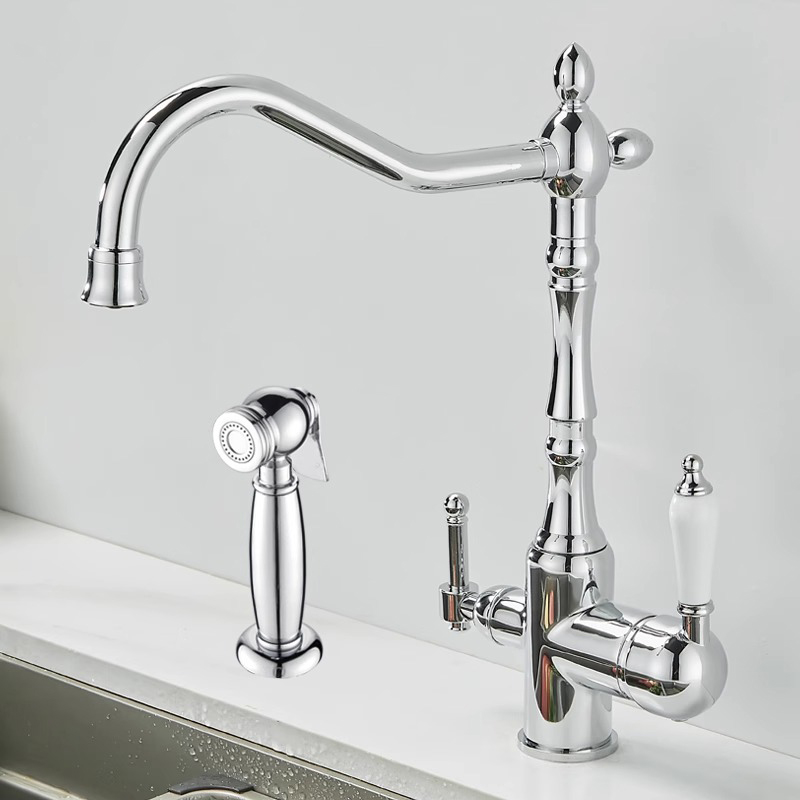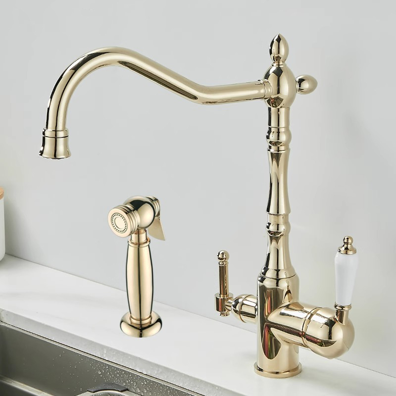 프랑스 복고풍 주방 수도꼭지, 냉온수, 전체 구리 정수기, 직접 마시는 3-in-1 식기 세척대, 회전식 스플래시 방지