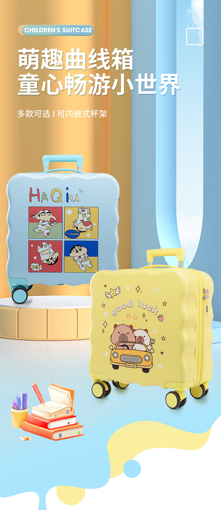 로고 프린트가 있는 어린이용 여행 가방, 회전 바퀴 20inch개, 어린이용 트롤리 가방, 만화 캐릭터가 있는 귀여운 기내용 가방, 남아 및 여아용스토어 가기