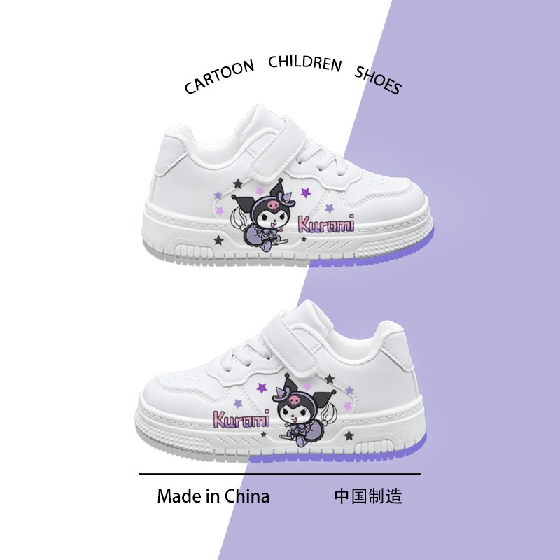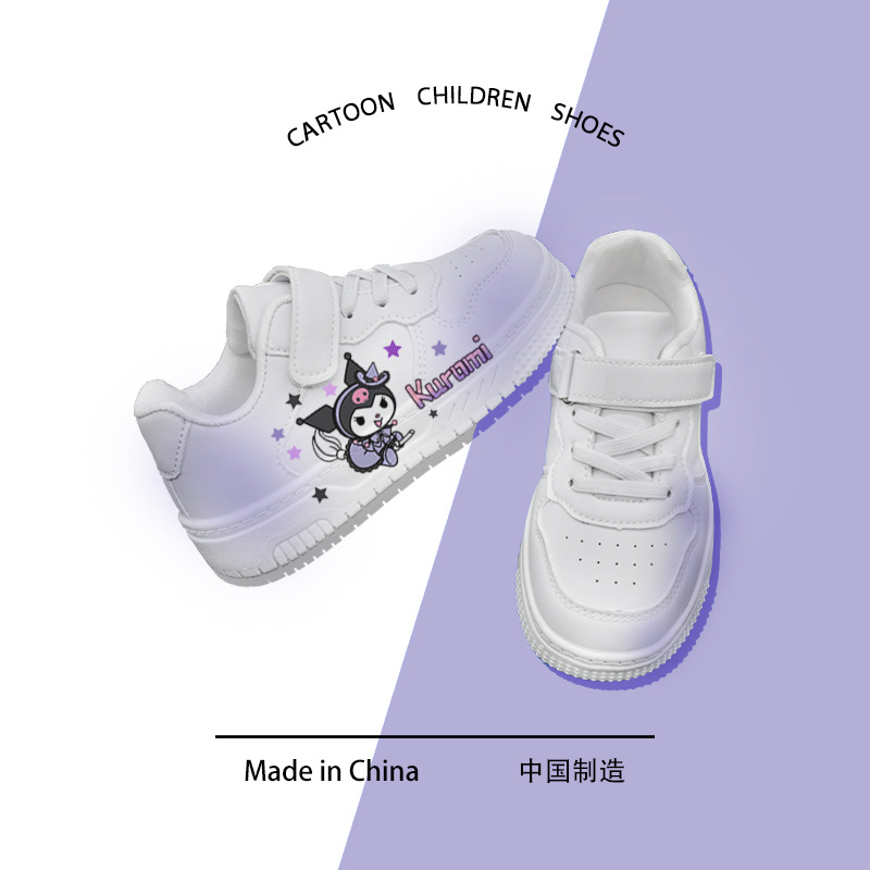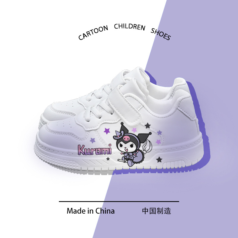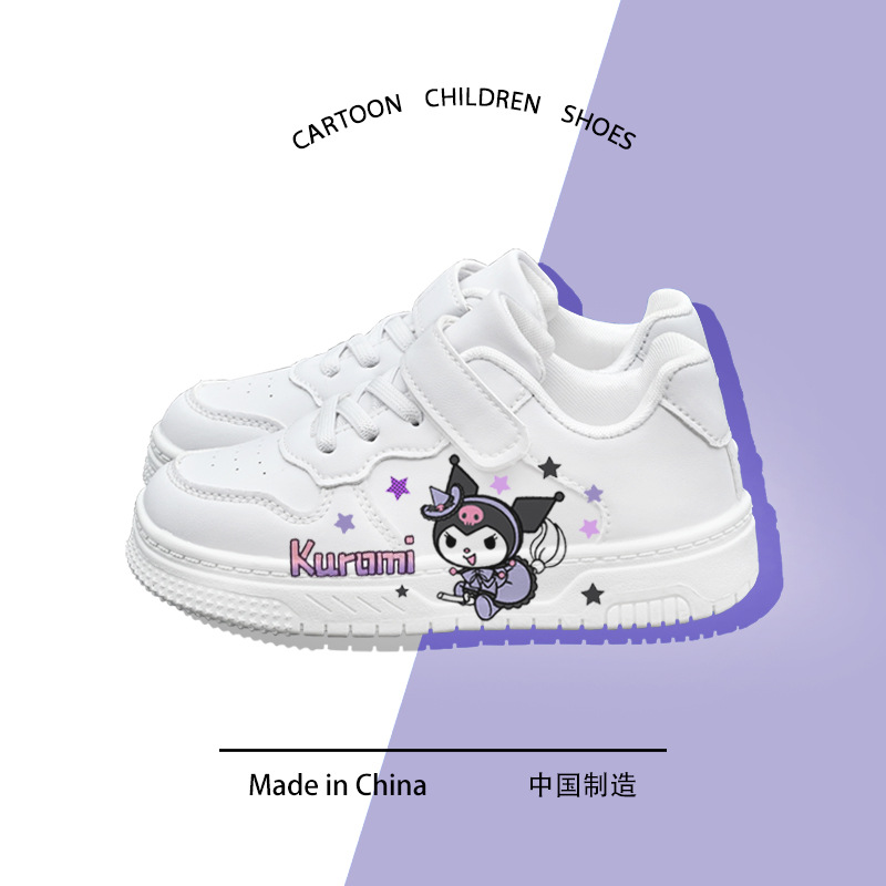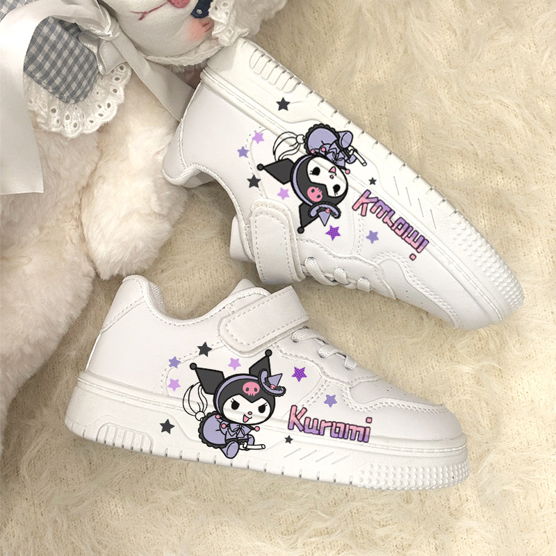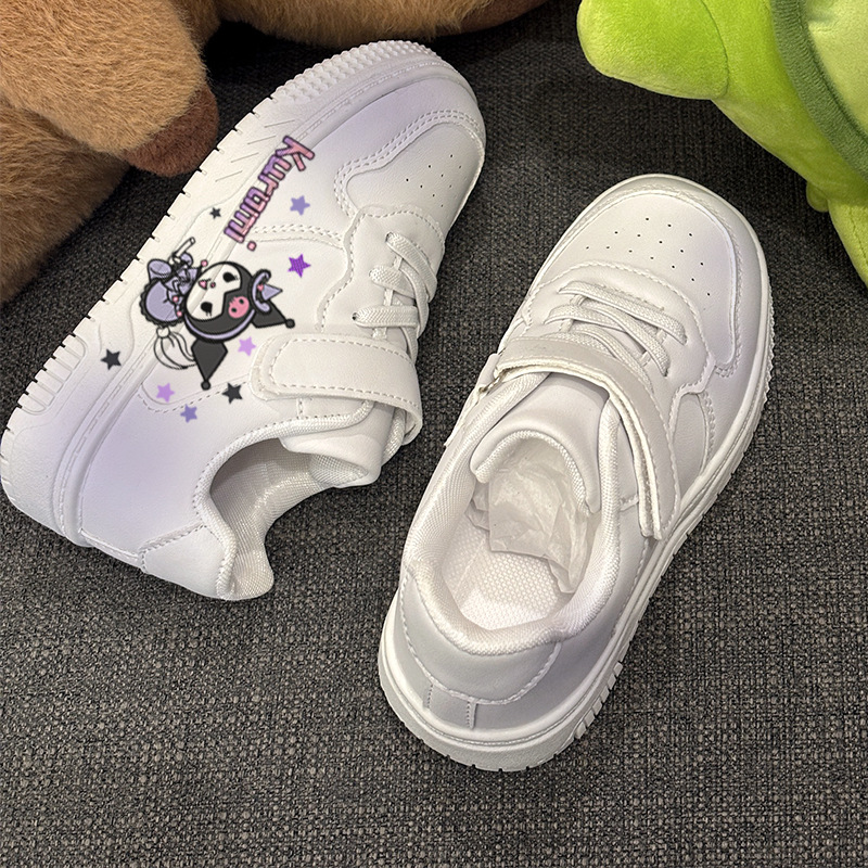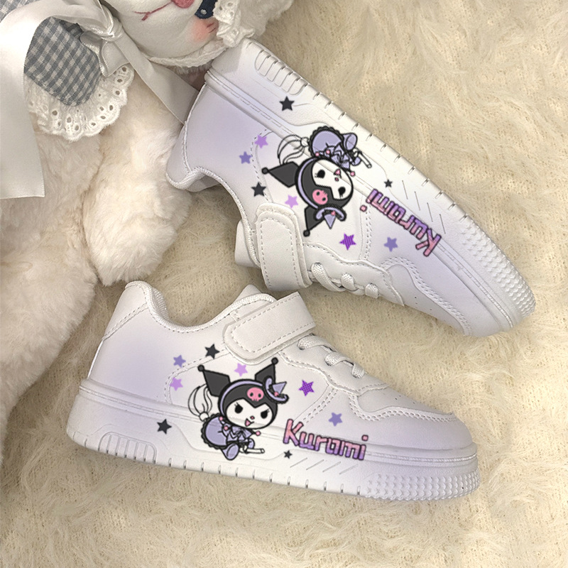 귀여운 흰색 신발 쿠로미 운동화 UV 인쇄 2025 새로운 캐주얼 중대형 어린이 신발 플랫 미끄럼 방지 캠퍼스스토어 가기