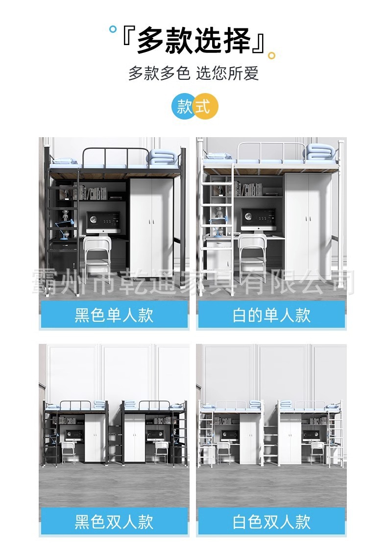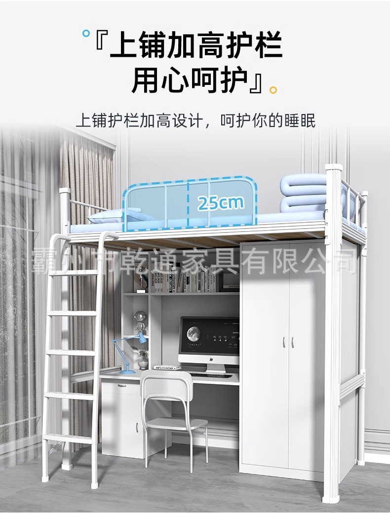 아파트 침대, 대학 기숙사, 상단 침대 및 하단 테이블, 철제 및 목재 조합, 옷장이 있는 하이 및 로우 침대, 철제 프레임 침대, 침실 철제 침대스토어 가기