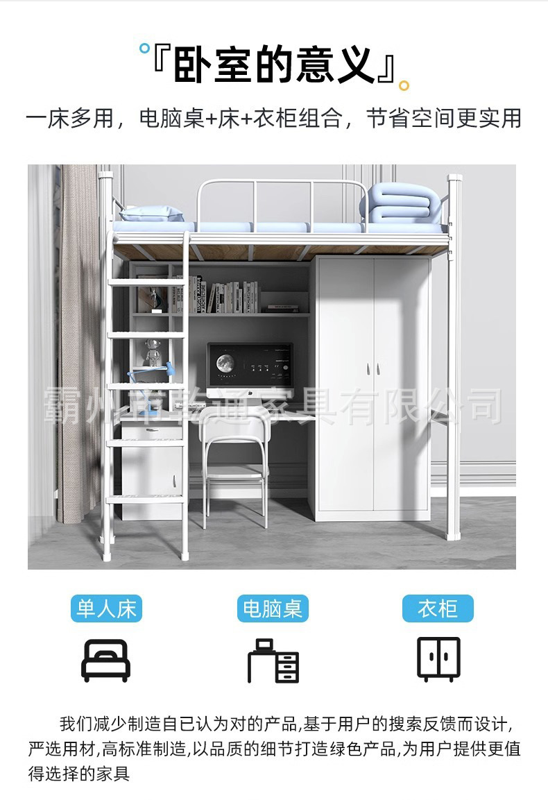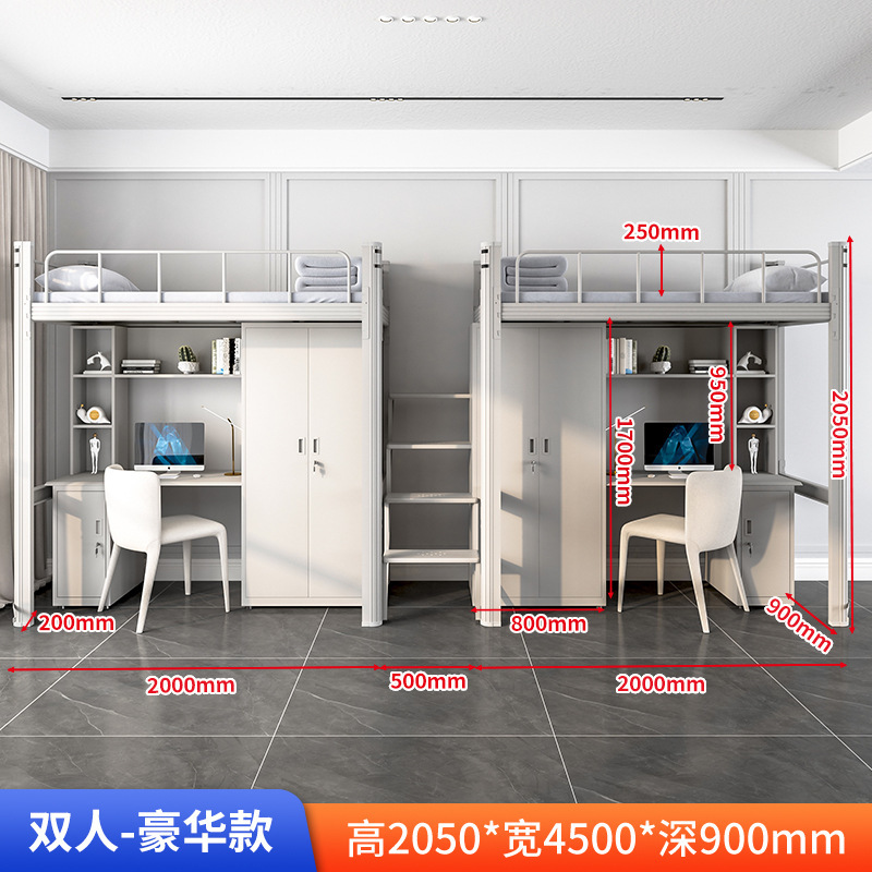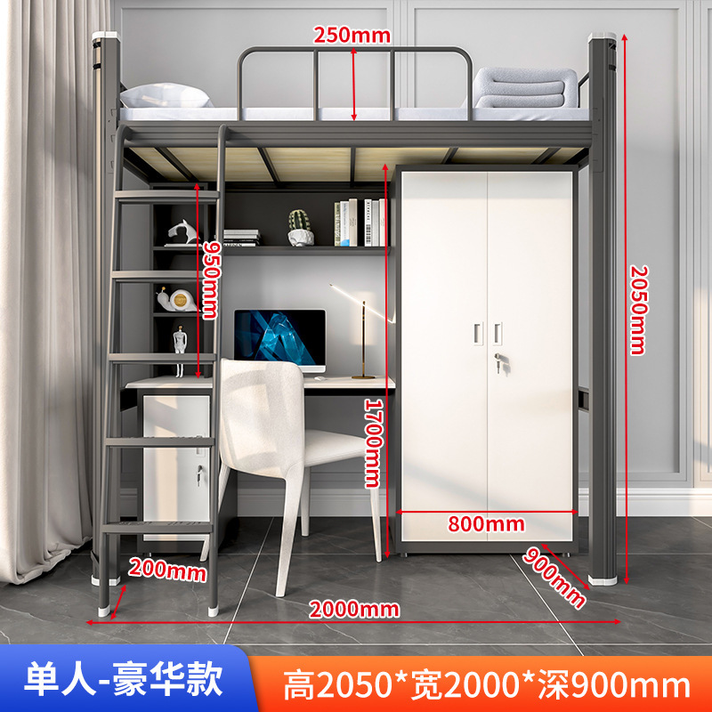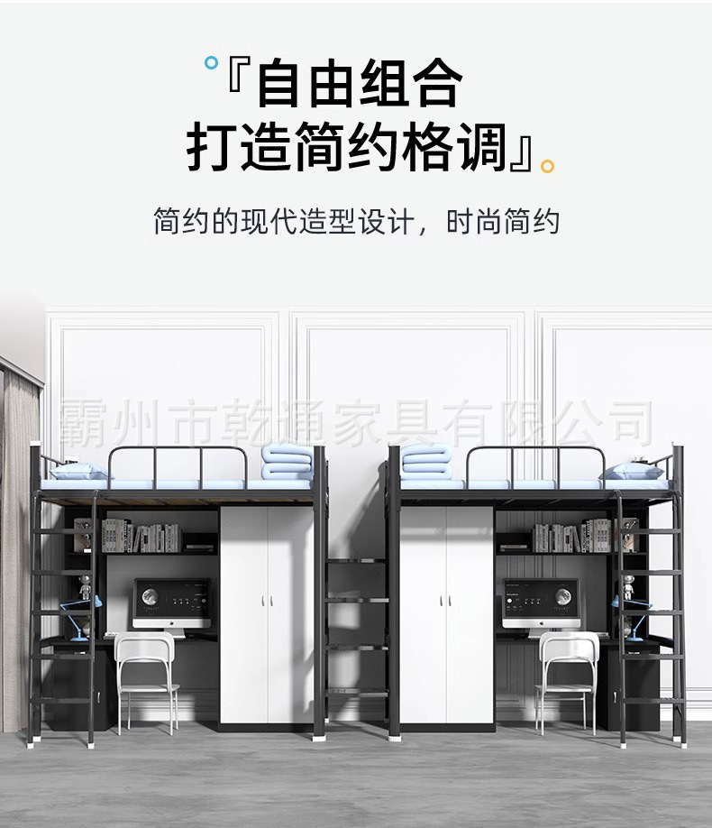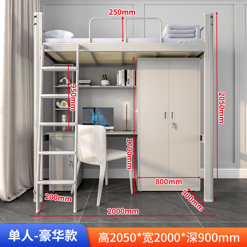 아파트 침대, 대학 기숙사, 상단 침대 및 하단 테이블, 철제 및 목재 조합, 옷장이 있는 하이 및 로우 침대, 철제 프레임 침대, 침실 철제 침대