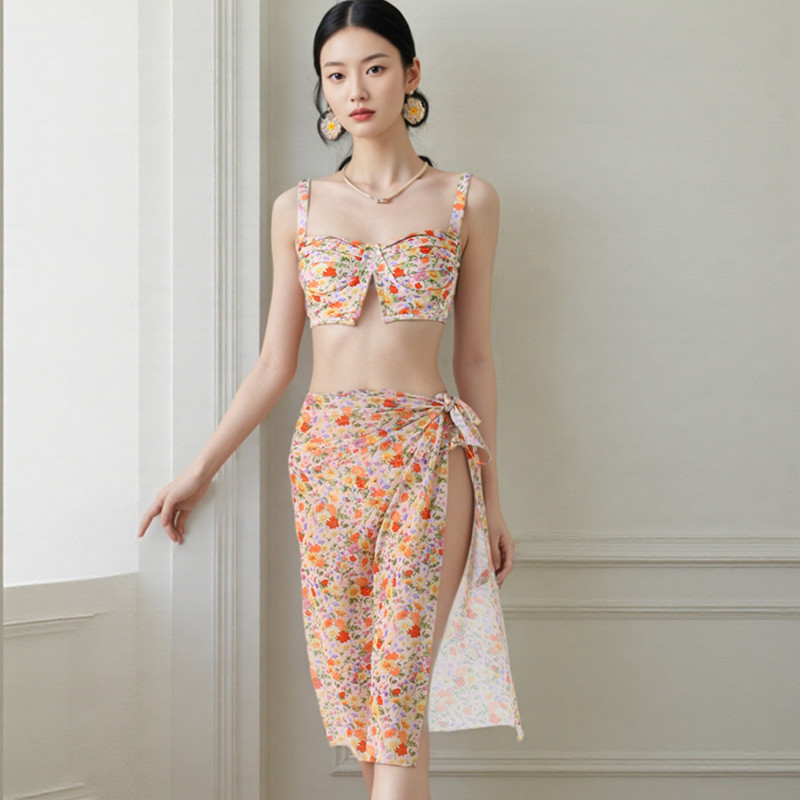 유럽과 미국 스타일의 비키니 비키니 스플릿 섹시한 하이 엔드 온천 휴가 3 피스 꽃 무늬 수영복 여성용 새 스타일스토어 가기