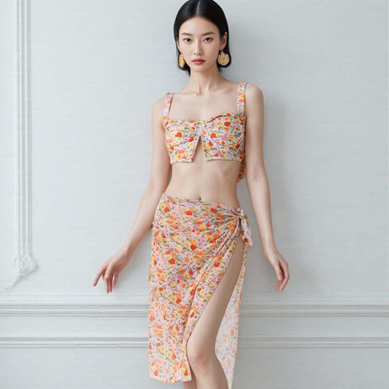 유럽과 미국 스타일의 비키니 비키니 스플릿 섹시한 하이 엔드 온천 휴가 3 피스 꽃 무늬 수영복 여성용 새 스타일