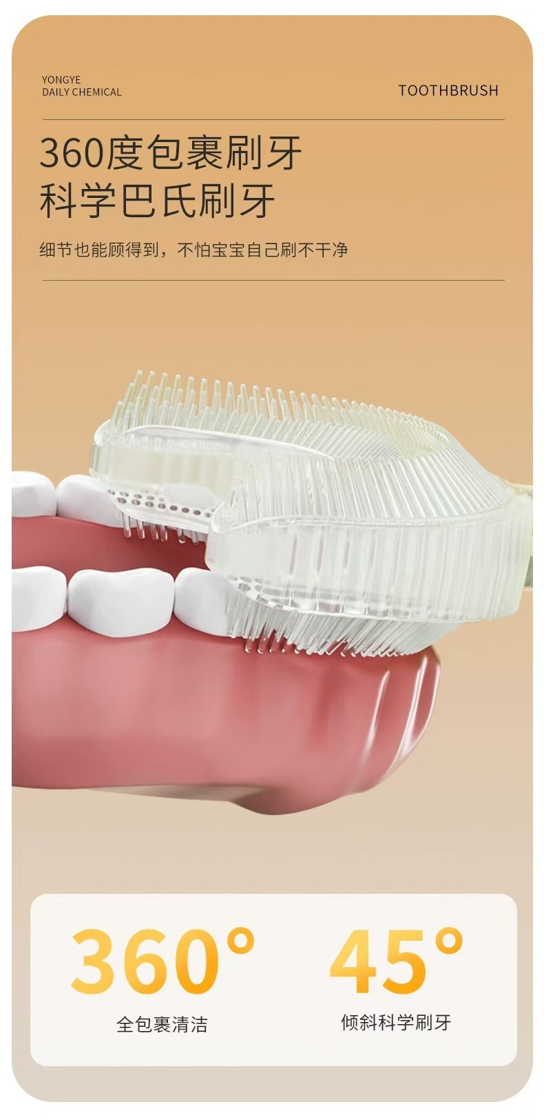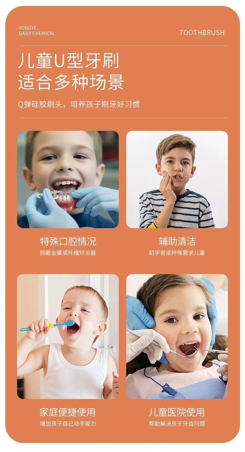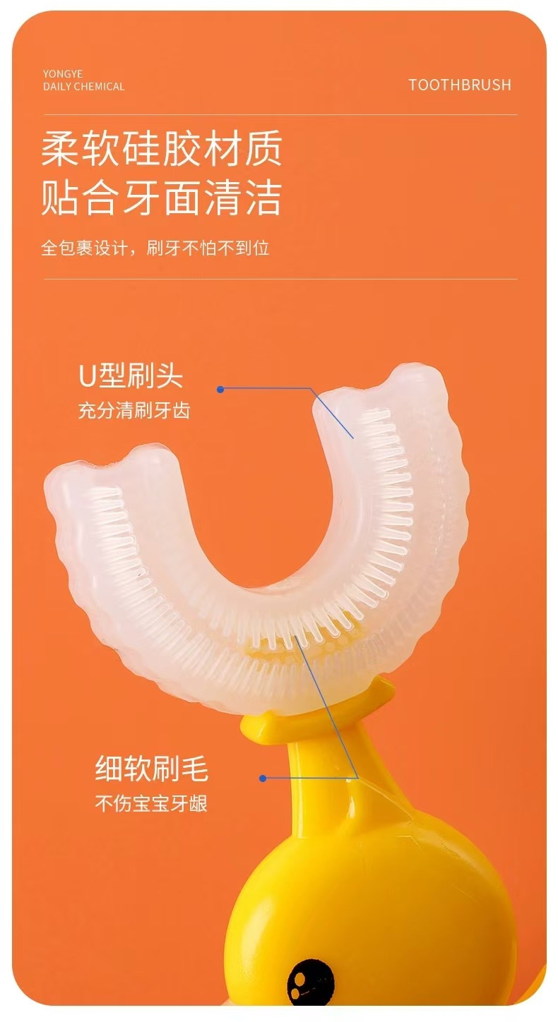 0-3세 및 2세 아기를 위한 고급 부드러운 칫솔, 실리콘 귀여운 어린이 칫솔, 유아용 U자형 원피스 드롭쉬핑스토어 가기
