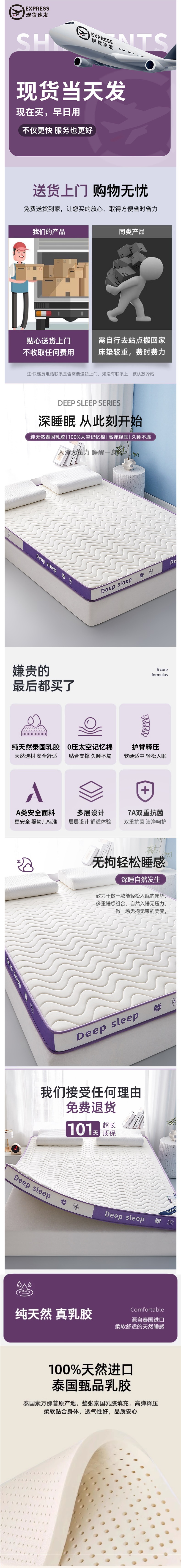 • [압력 0으로 깊은 수면 업그레이드] 입체 엣지 딥 클라우드 퍼플 두께 약 6cm [A급 밀크 실크 원단 & 라텍스 충전재 & 항압 척추 보호]