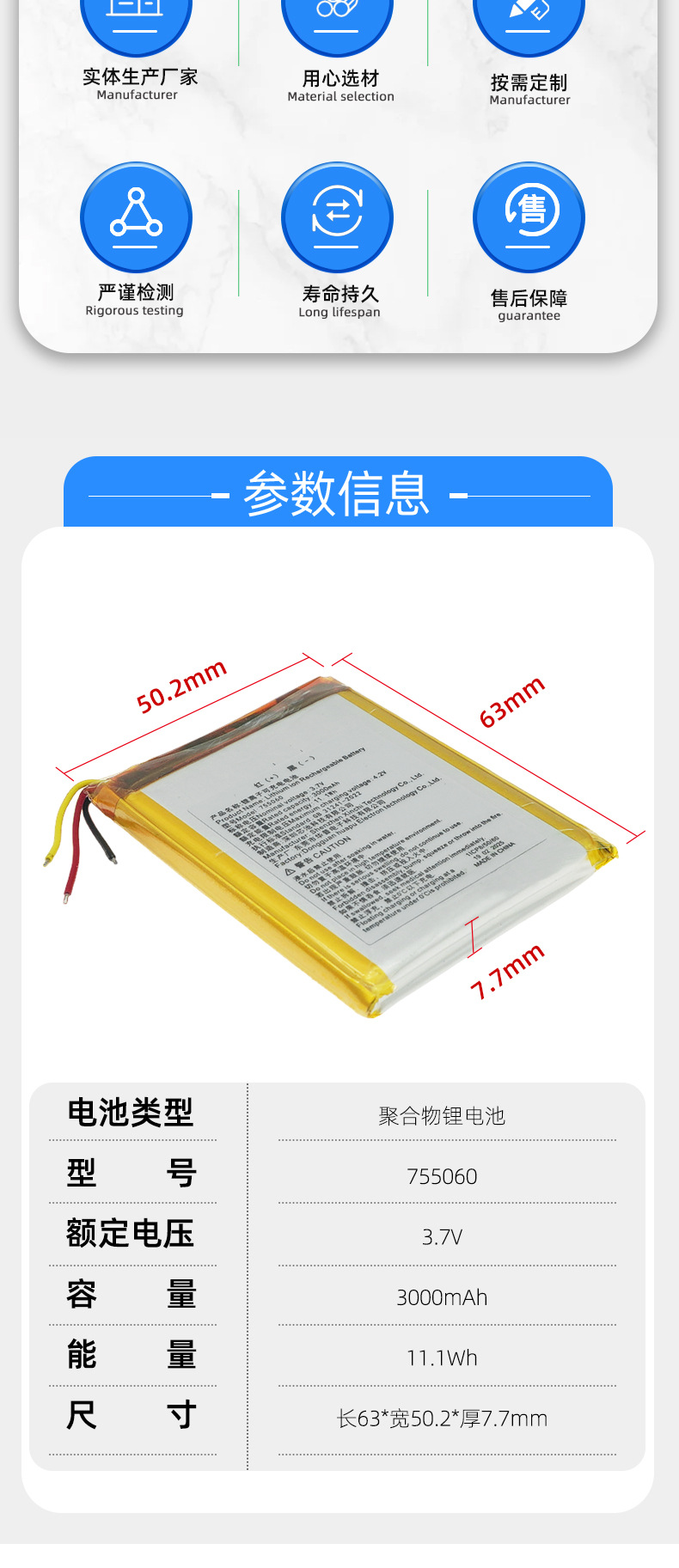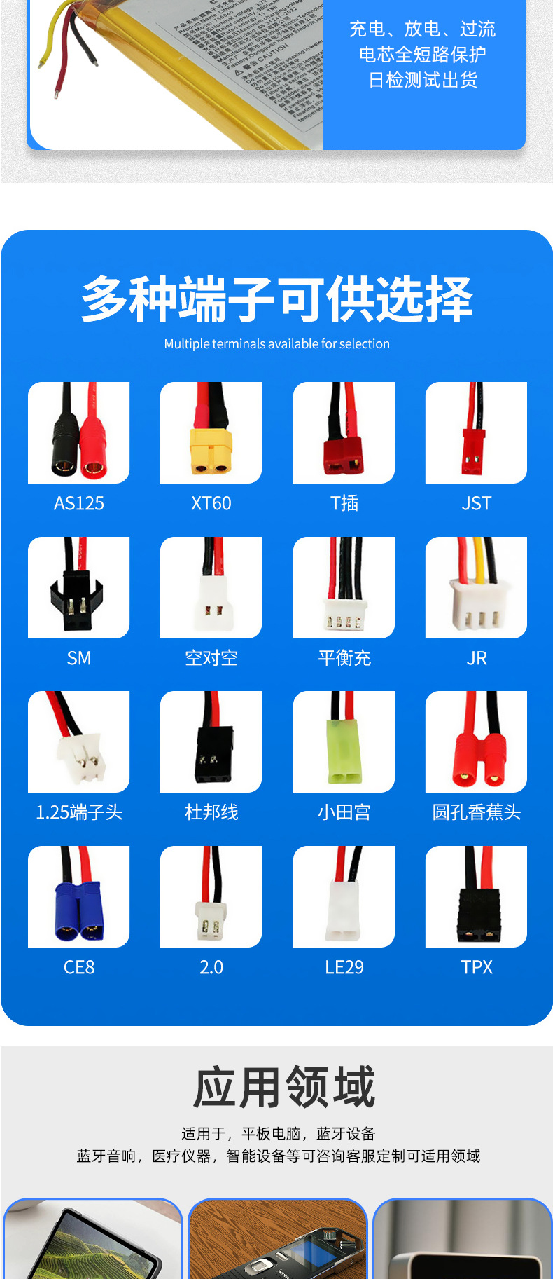 聚合物锂电池厂家热卖太阳能玩具驱灭蚊子灯露营灯小风扇三元电池聚合物锂电池602040等多种型号容量蓝牙耳机美容仪小夜灯电池现货现货批发聚合物锂电池 多型号多规格锂电池 适用于各种电子产品聚合物锂电池3.7V加保护板线92款35mah至20000mah医疗机械充电池803040聚合物锂电池1000mAh 定位器小夜灯通讯录软包电芯厂家直供聚合物锂电池103450 1800mah蓝牙耳机美容仪led灯电子产品锂电池602530-400充电锂电池3.7v聚合物锂电池可定制容量3.7V 2000mAh 聚合物锂电池、化妆镜电池、按摩仪电池韩国KC认602040400mAh3.7V聚合物锂电池蓝牙耳机音响记录仪902030电池 3.7V 520mAh 智能玩具美容仪器蓝牙耳机聚合物锂电池工厂902030PL锂电池3.7V500mAh蓝牙音箱鼠标玩具美容仪聚合物电芯