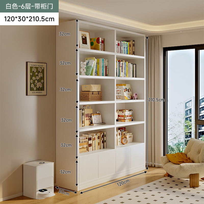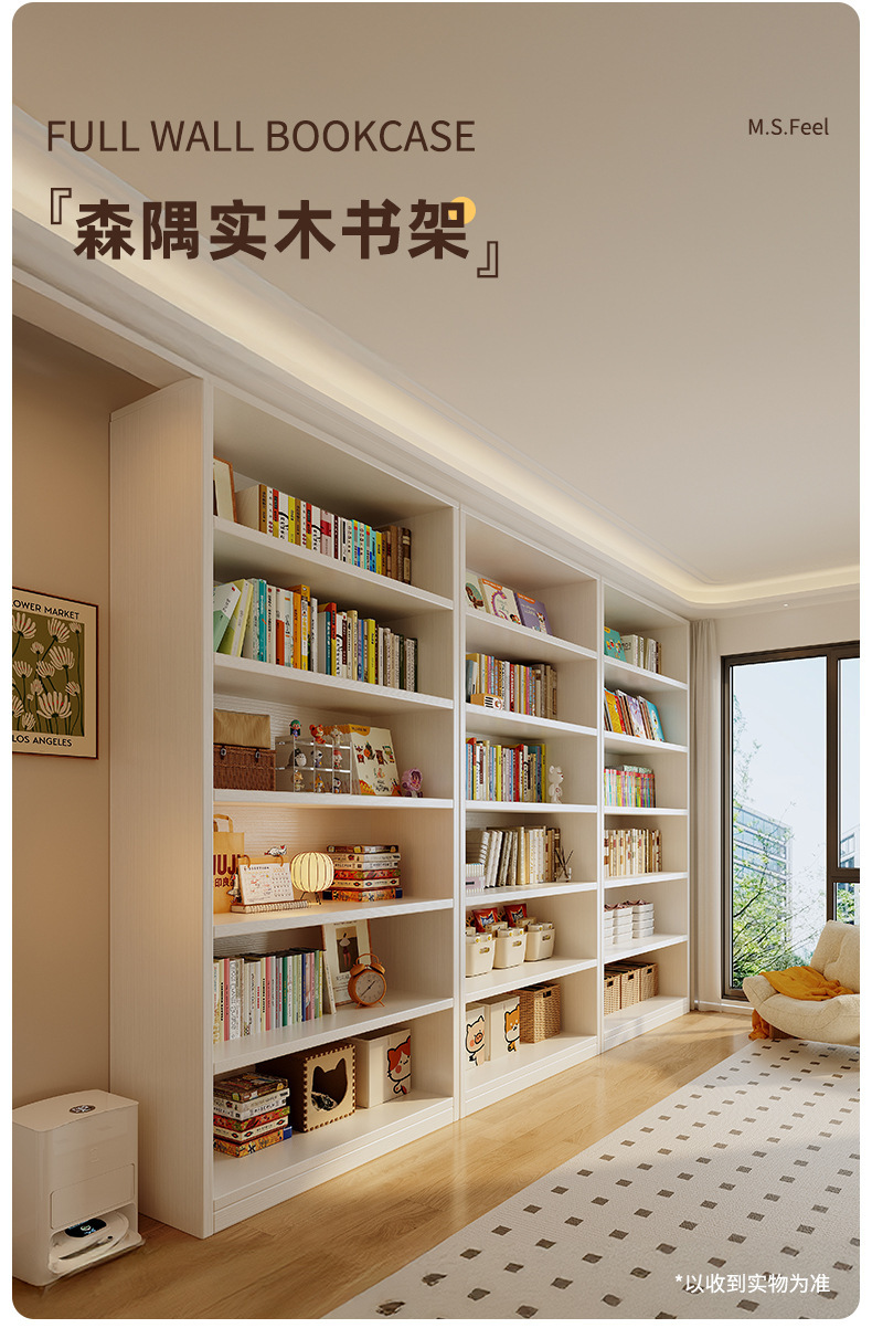 단단한 나무 도서관 책장 바닥에서 천장까지의 선반 벽 어린이 그림책 거실 학생 수납 책장 통합 벽스토어 가기