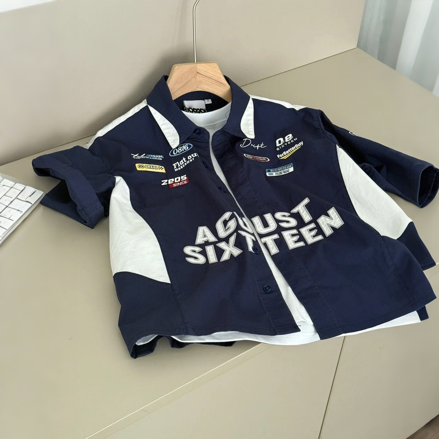 • 네이비 블루 반소매 셔츠