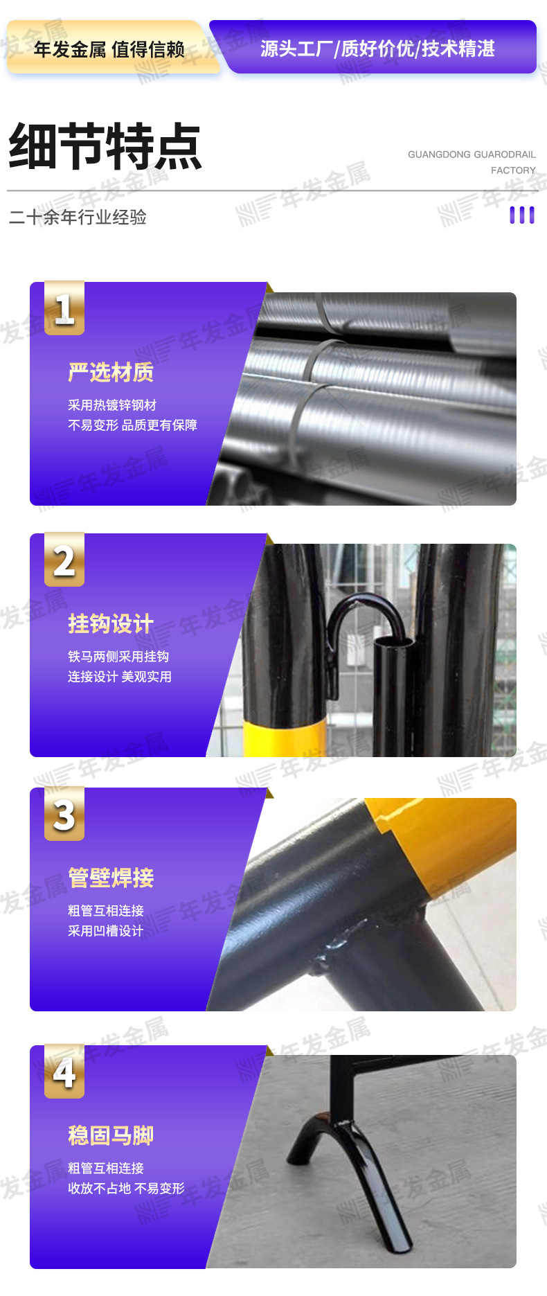 Foshan 제조업체 반사 검정색과 노란색 천공 철제 말 가드 레일 시정 임시 격리 안전 모바일 철제 말 가드 레일