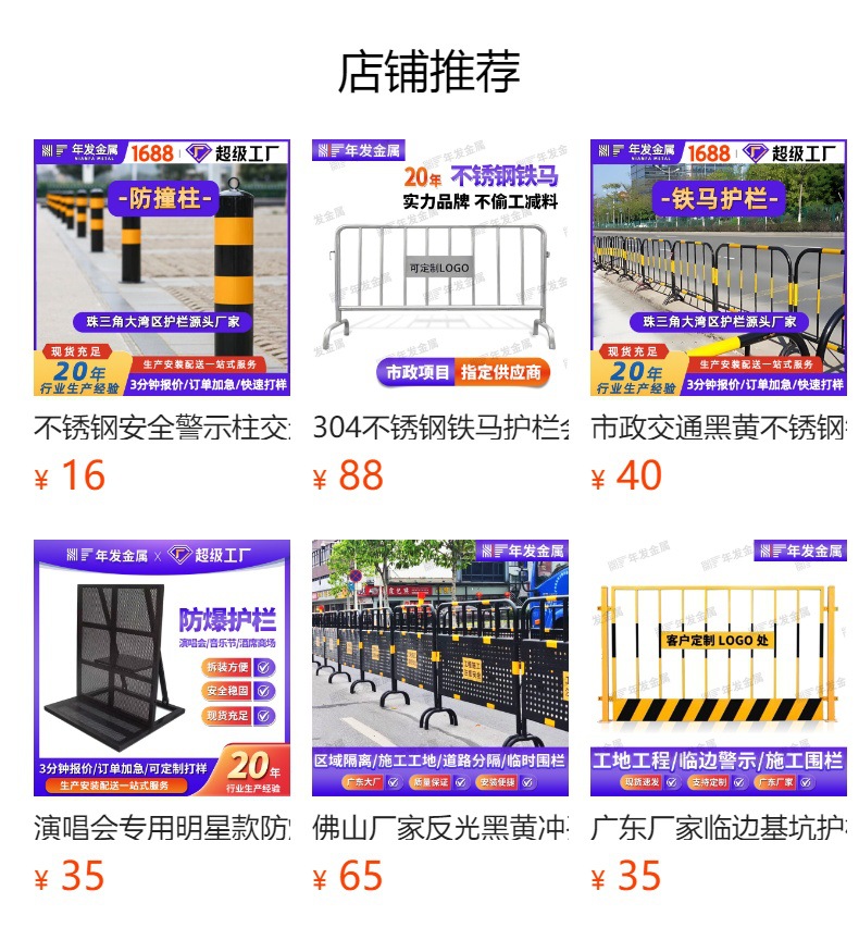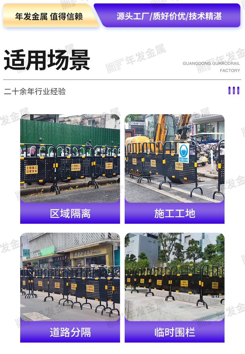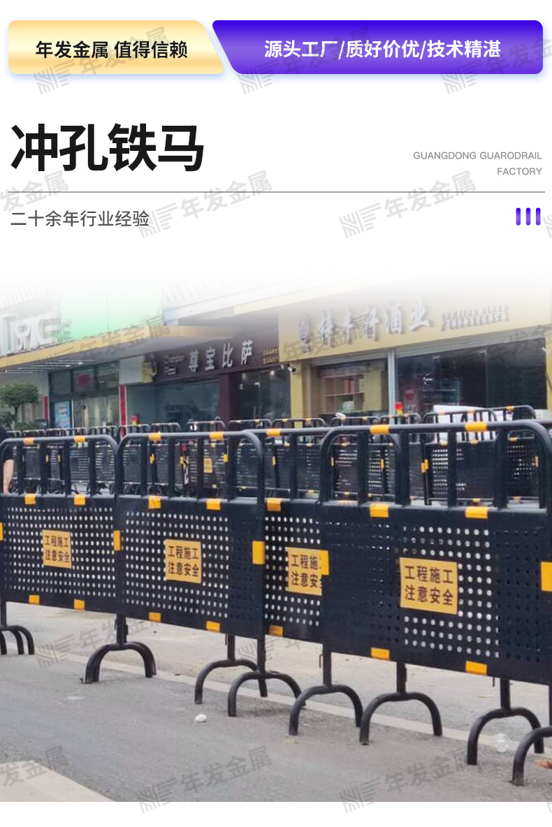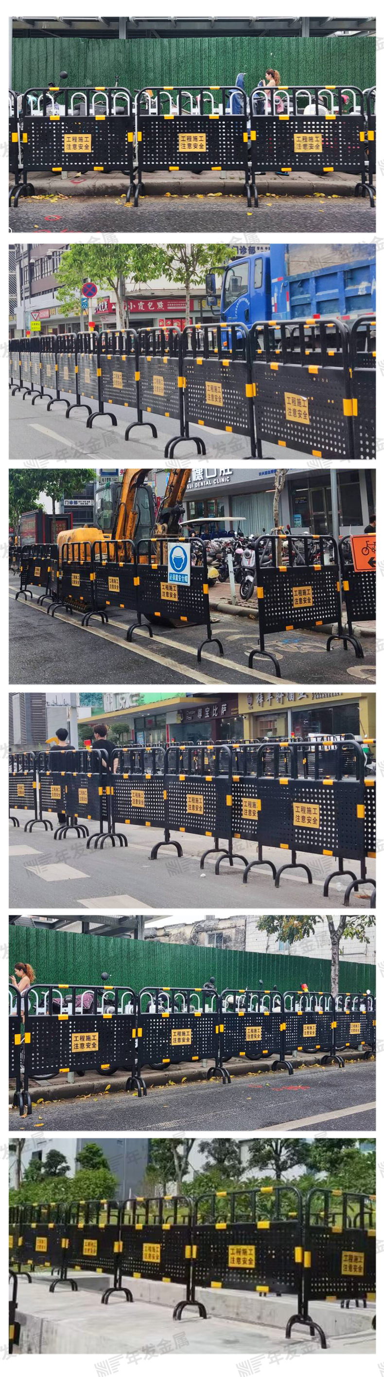 Foshan 제조업체 반사 검정색과 노란색 천공 철제 말 가드 레일 시정 임시 격리 안전 모바일 철제 말 가드 레일스토어 가기