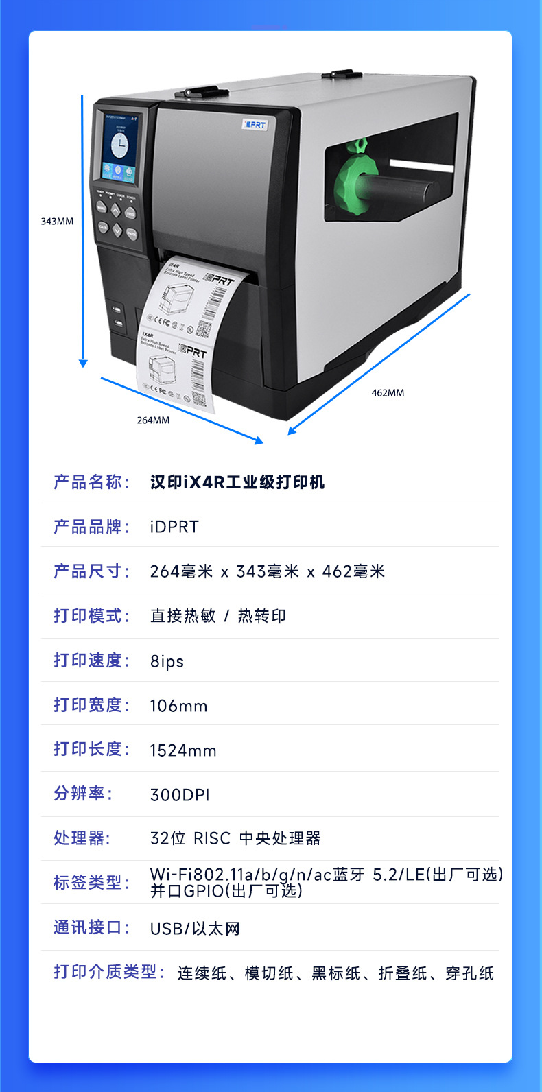 Hanyin iX4p 산업용 등급 열전사 프린터 창고 물류 의료용 바코드 라벨 프린터