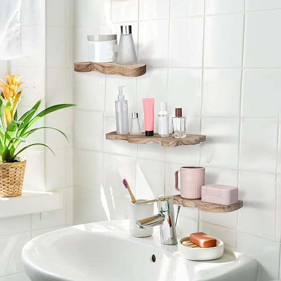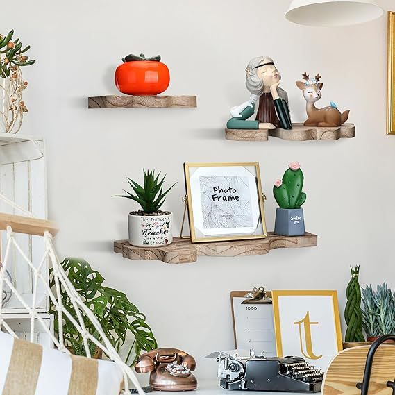 나무 물결 모양의 가장자리 플로팅 선반 금속 브래킷이있는 나무 선반 벽걸이 형 디스플레이 선반 농가 빈티지 벽 선반스토어 가기