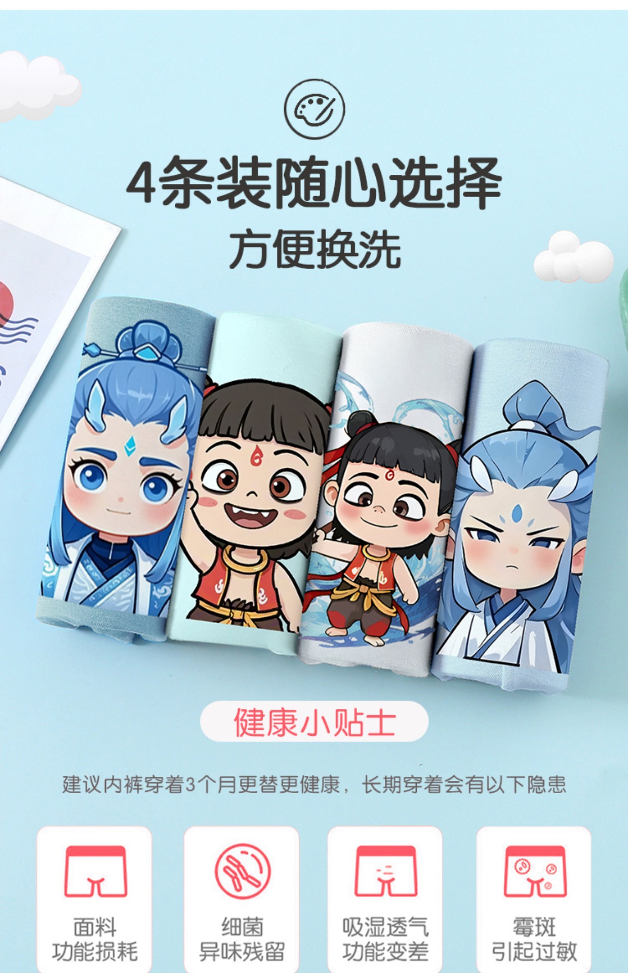 아동 속옷 소년 Nezha 2 새로운 순면 복서 팬티 소년 중대형 아동용 A급 면 복서 반바지스토어 가기