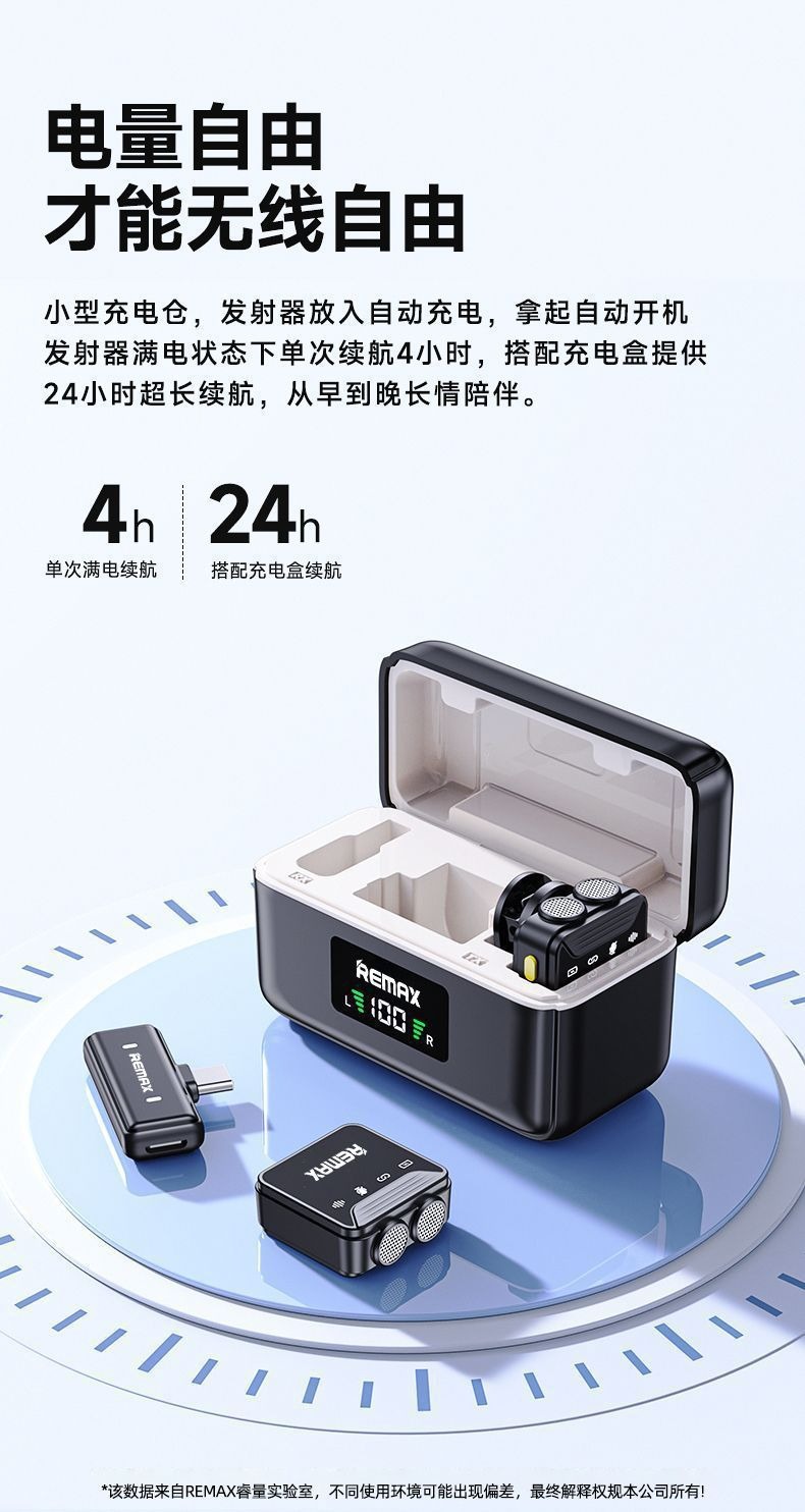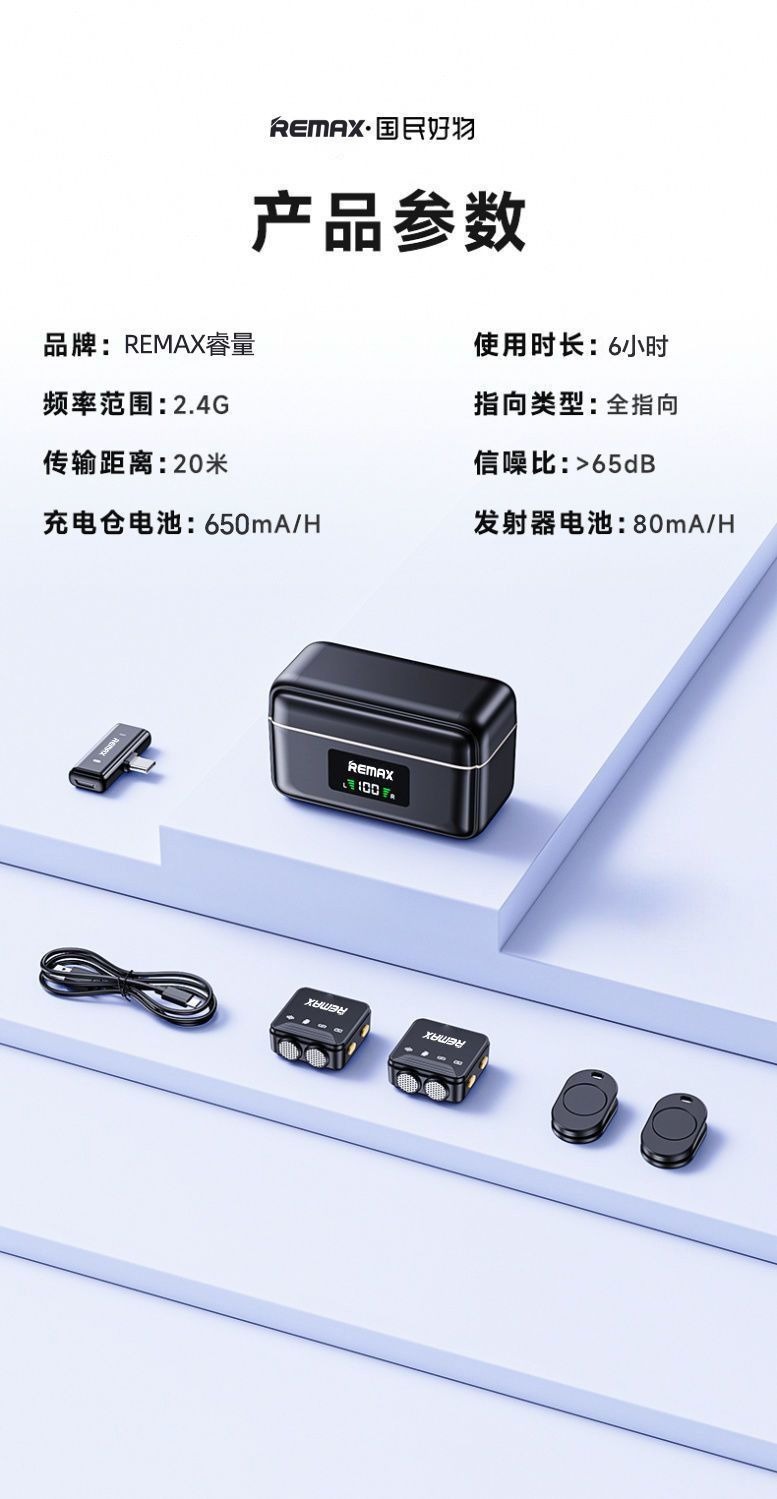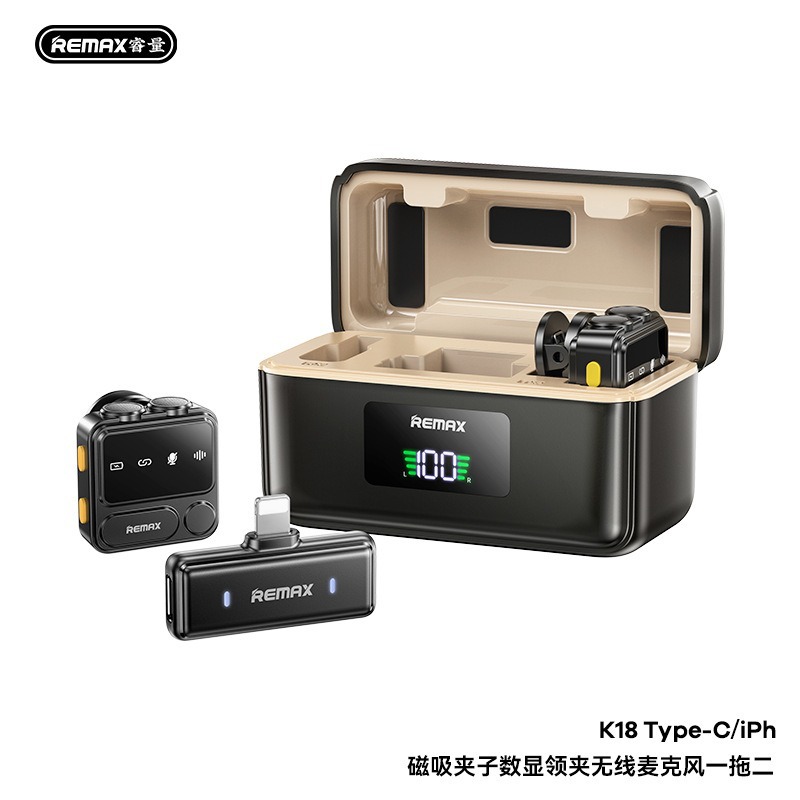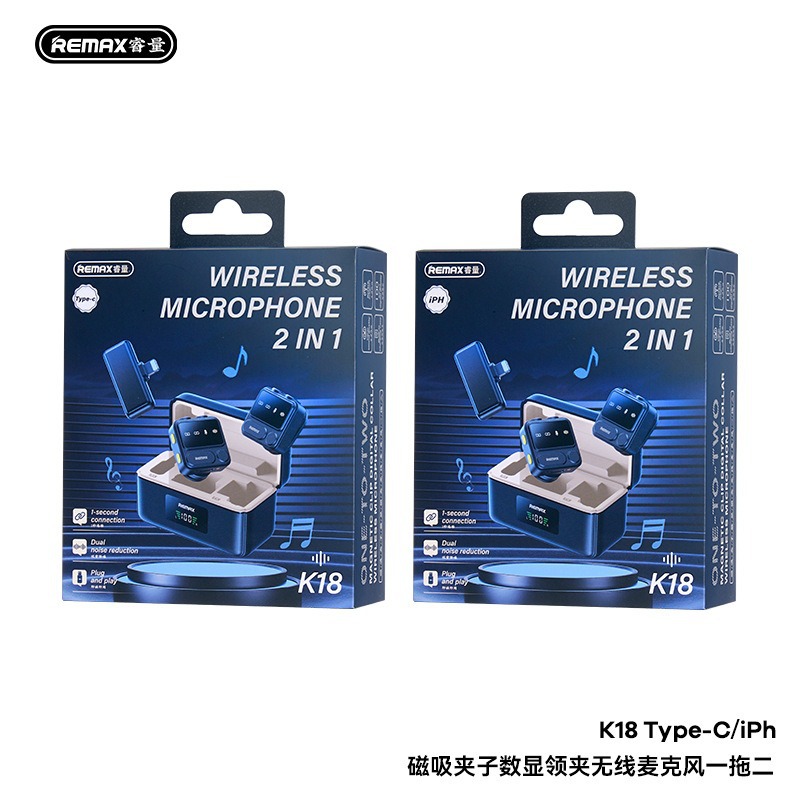 Remax 자기 칼라 클립 이중 소음 감소 무선 마이크 라이브 방송 긴 배터리 수명 전원 디스플레이 마이크스토어 가기