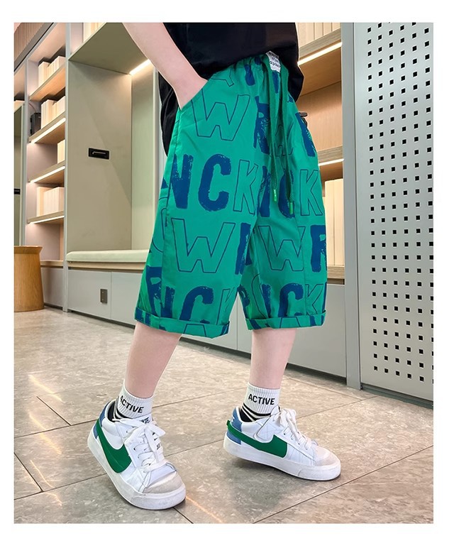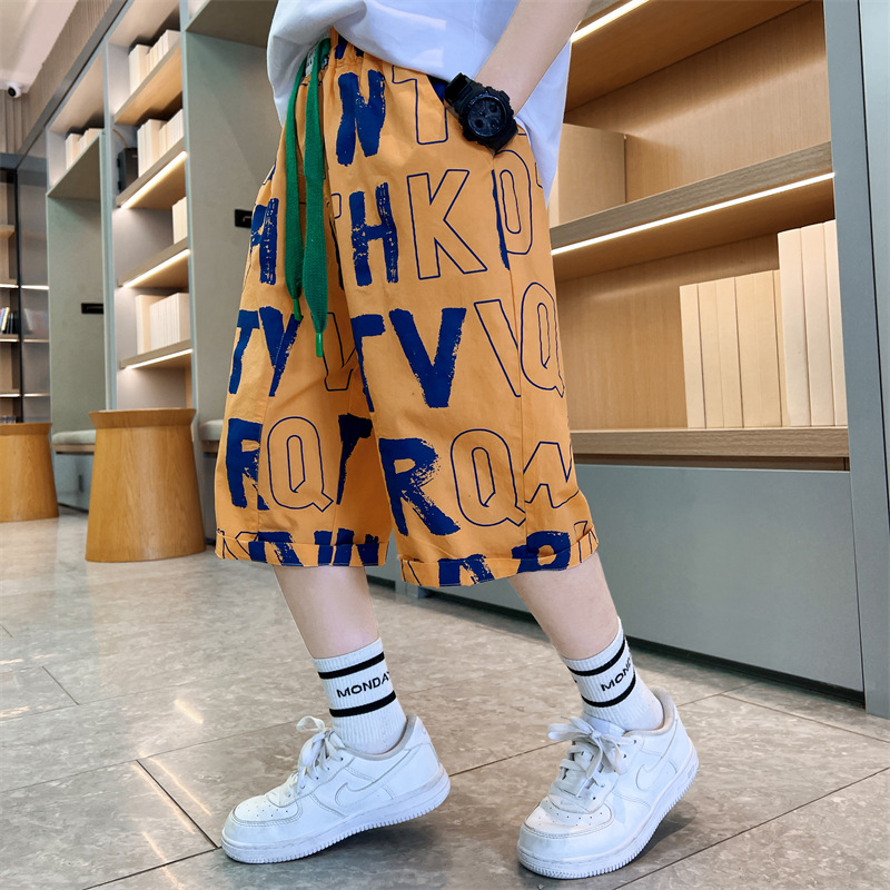 아동복 소년 여름 속건 반바지 2025 새로운 스타일 중대형 어린이 여름 얇은 7부 바지 여름 캐주얼스토어 가기