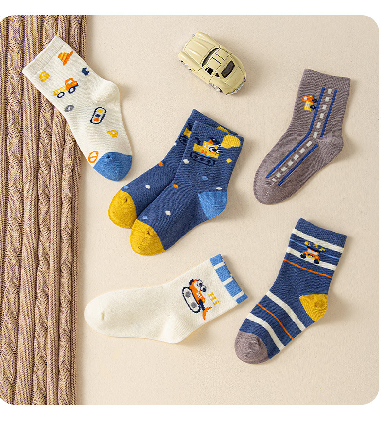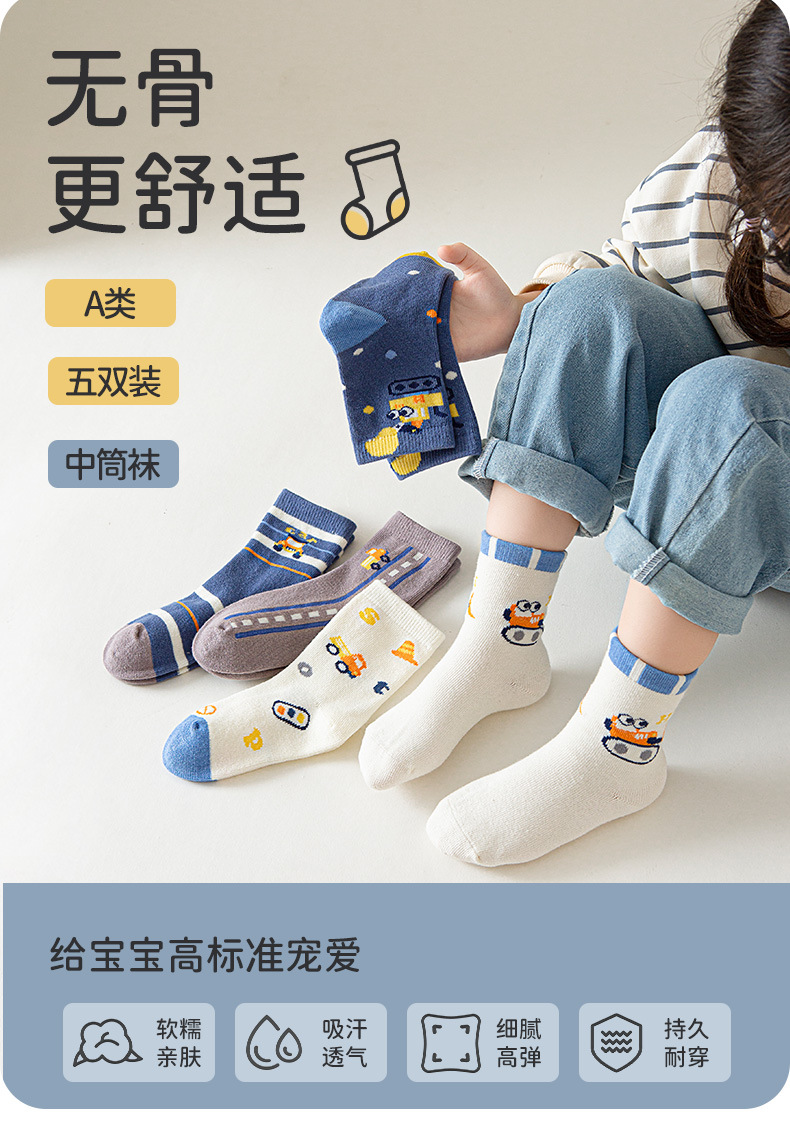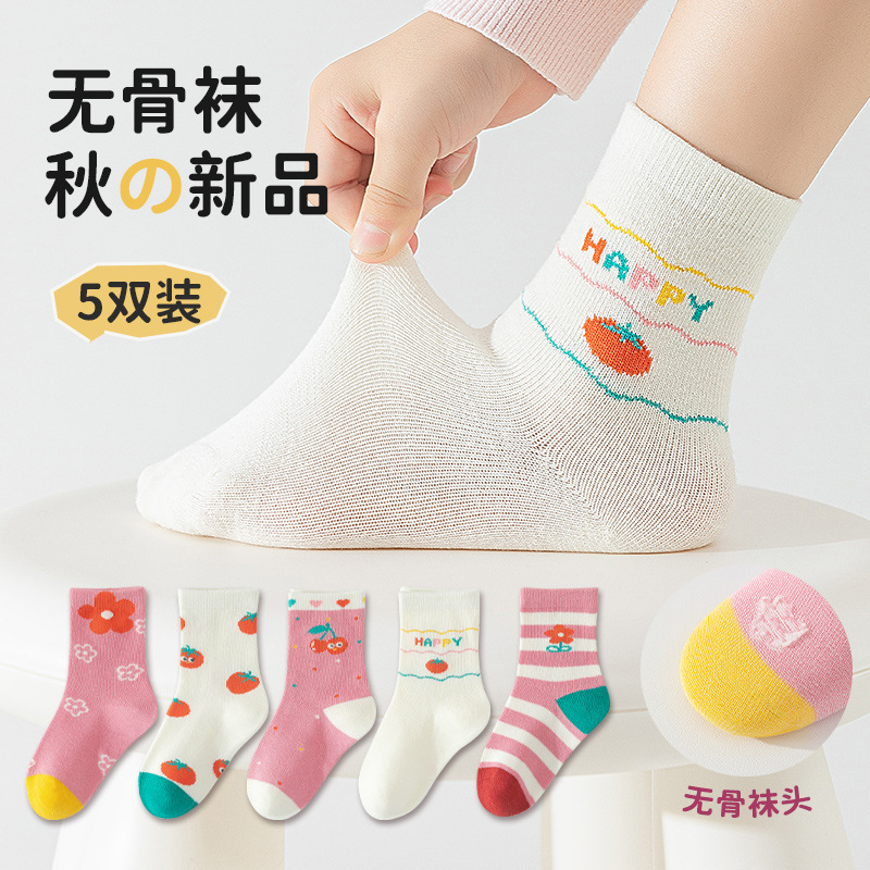 남아 및 여아용 아동용 면양말, 남아 및 여아용 가을 트렌디 양말, 만화 귀여운 뼈없는 종아리 중간 종아리 양말, 사계절용스토어 가기