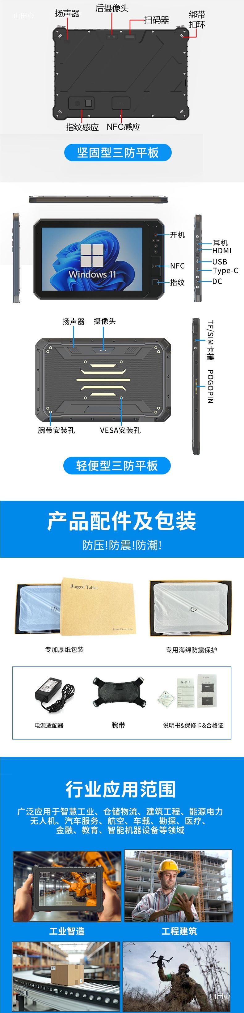 Jisen 삼중 방지 산업용 태블릿 PC 방진, 낙하 방지 및 방폭 강화 생산 라인 스캔 코드 휴대용 PAD