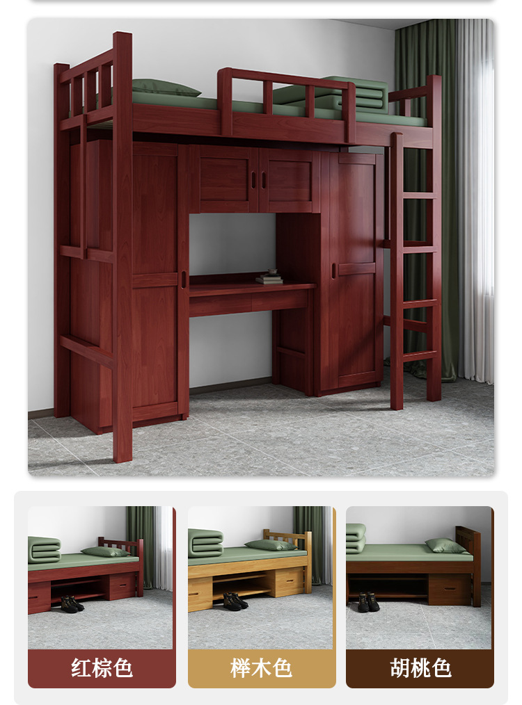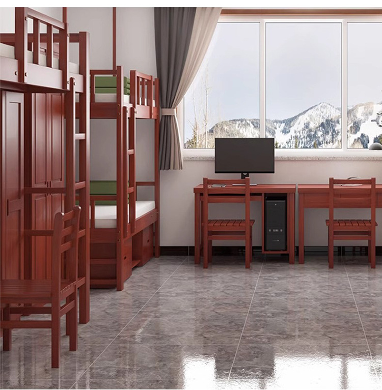 목재 캠프 침대 원목 이층 침대 이층 기숙사 침대 캠프 하우스 싱글 침대 바닥 캐비닛 원목 아파트 싱글 침대