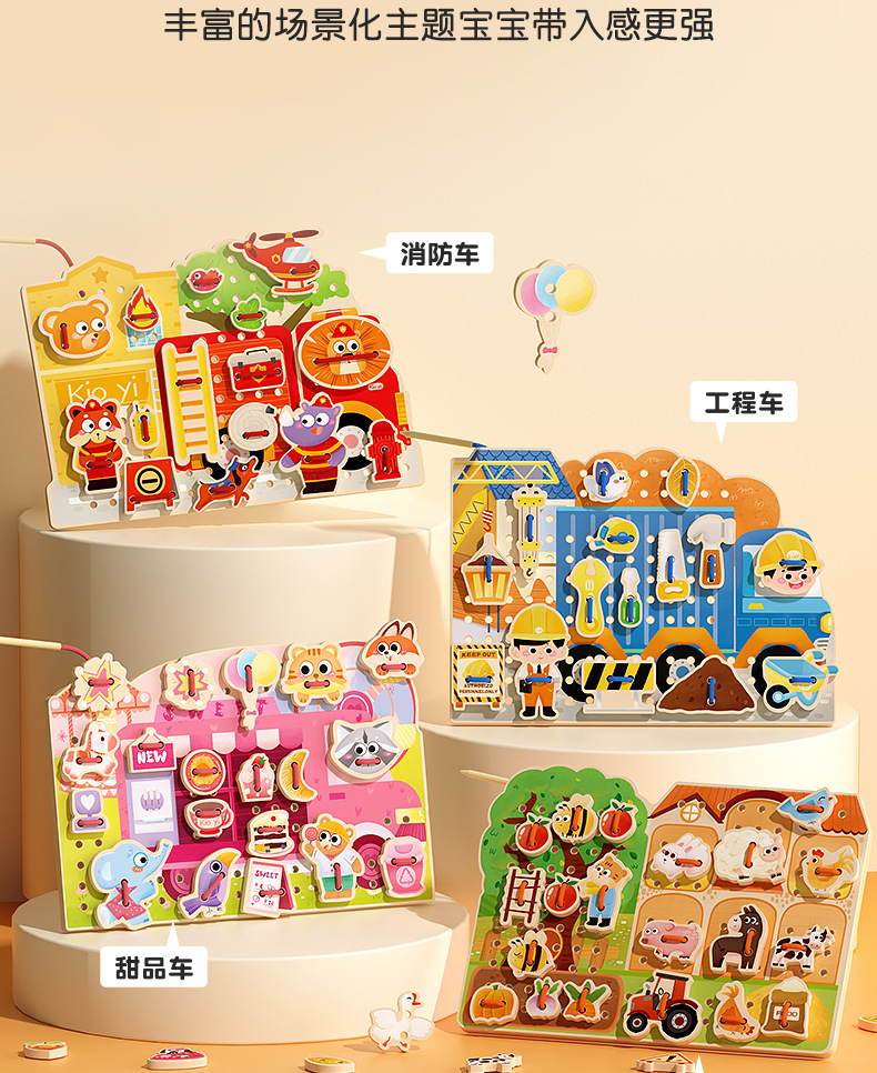 어린 소녀들이 로프를 입는 어린이 교육 장난감 아기 조기 교육 로프 착용 게임 손 미세 운동 운동 교육 보조 장치스토어 가기
