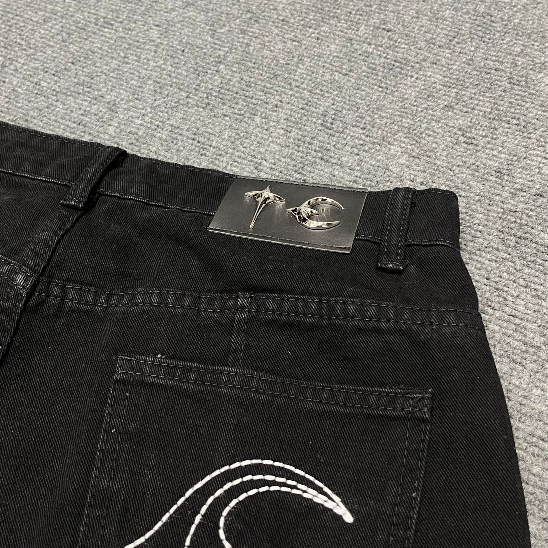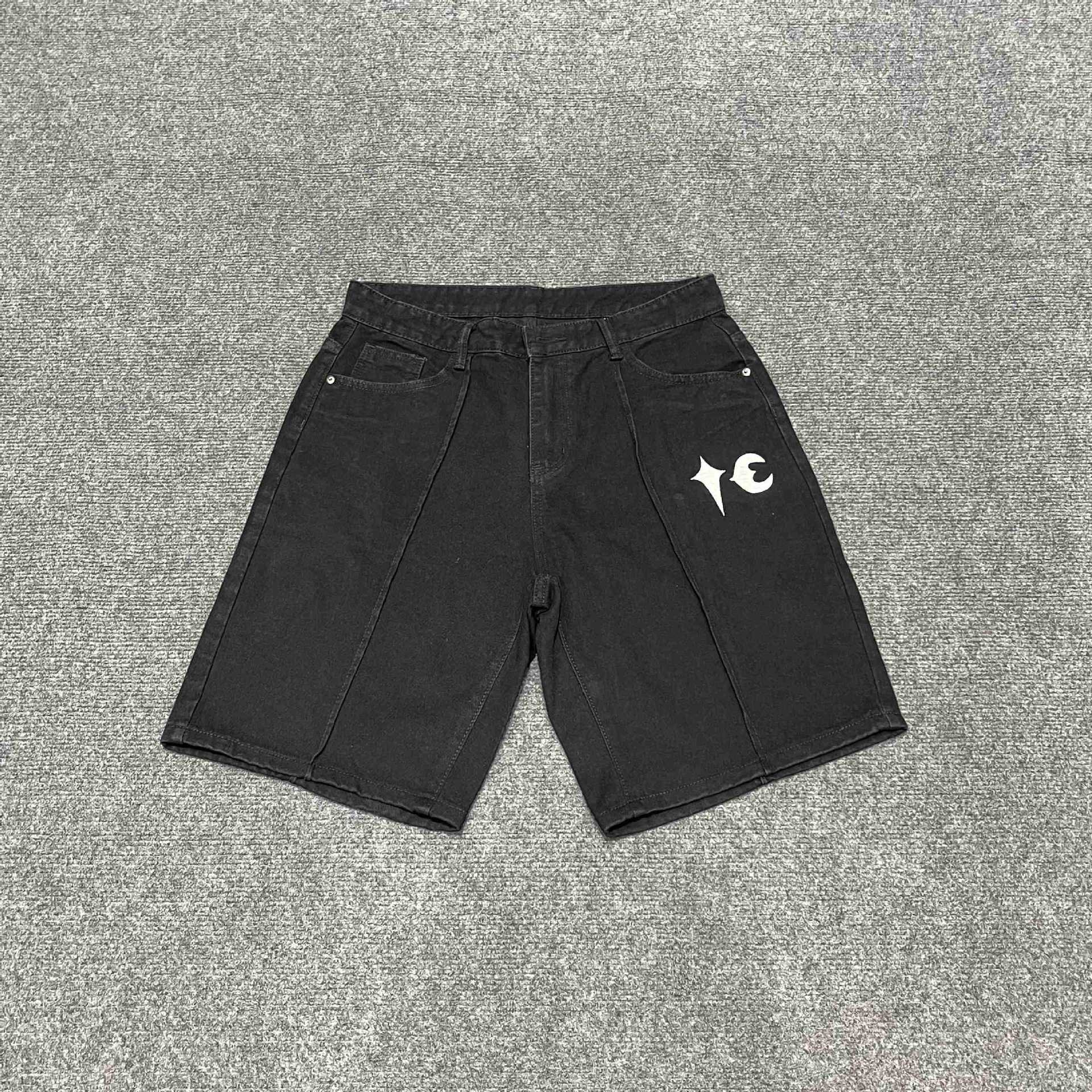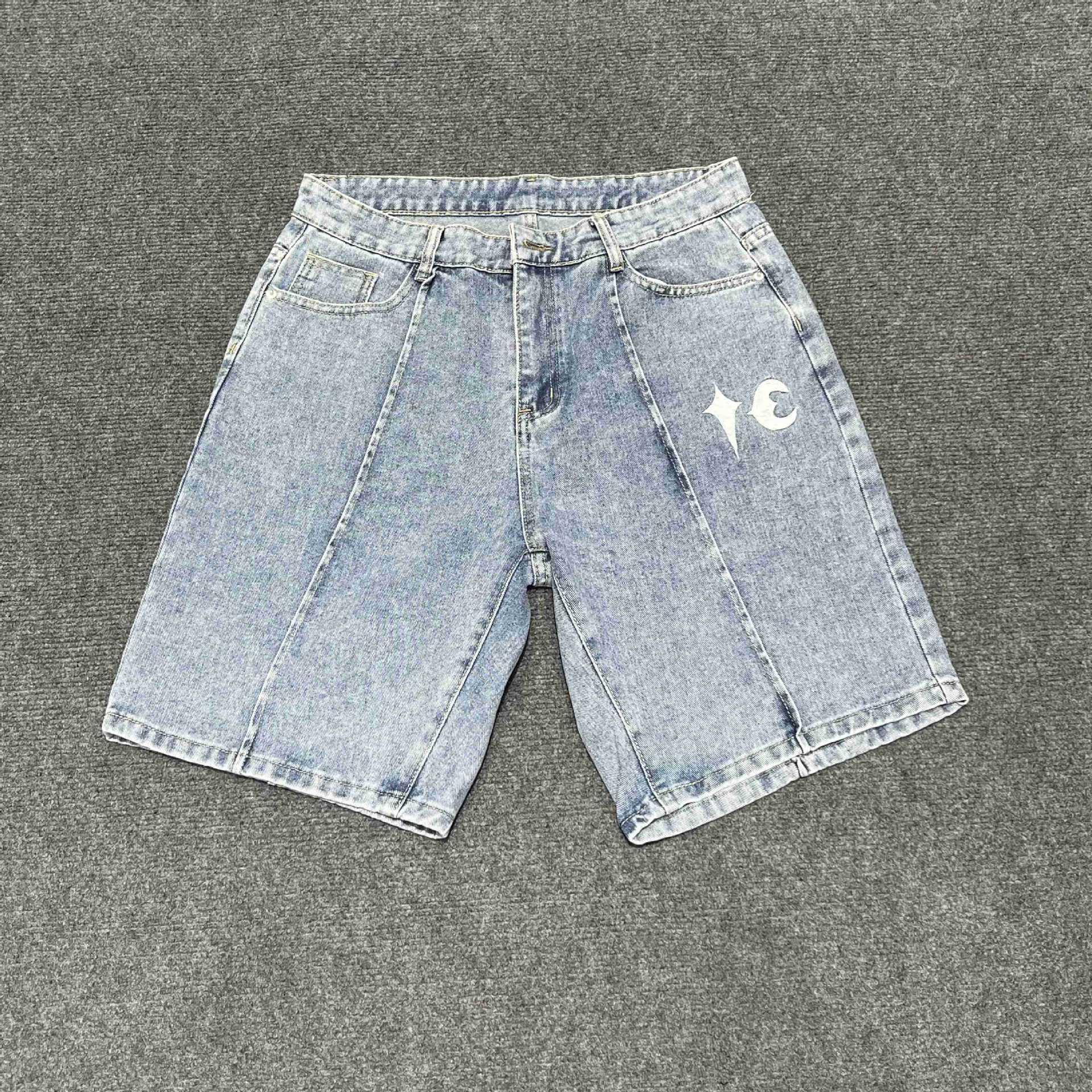 THUG CLUB JORTS 별과 달 자수 메탈 반바지 남성 하이 스트리트 힙합 캐주얼 5부 청바지 크로스보더스토어 가기