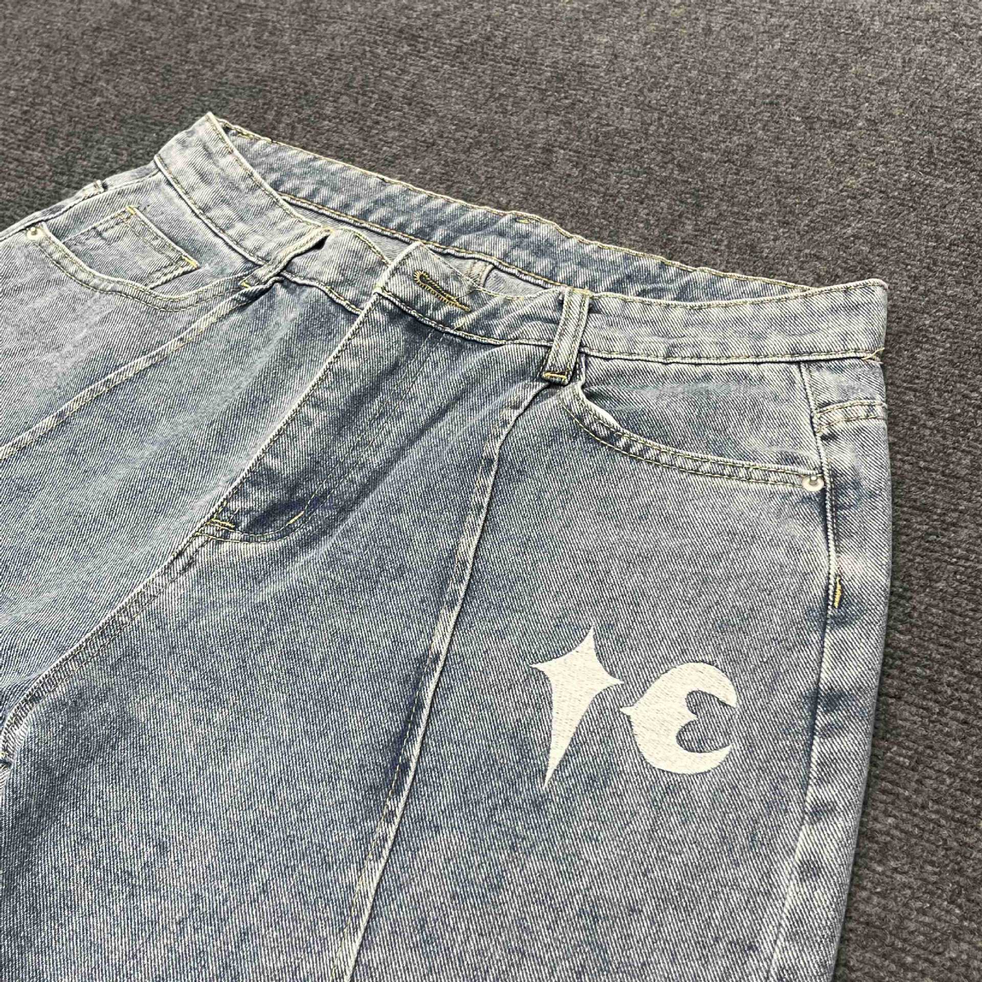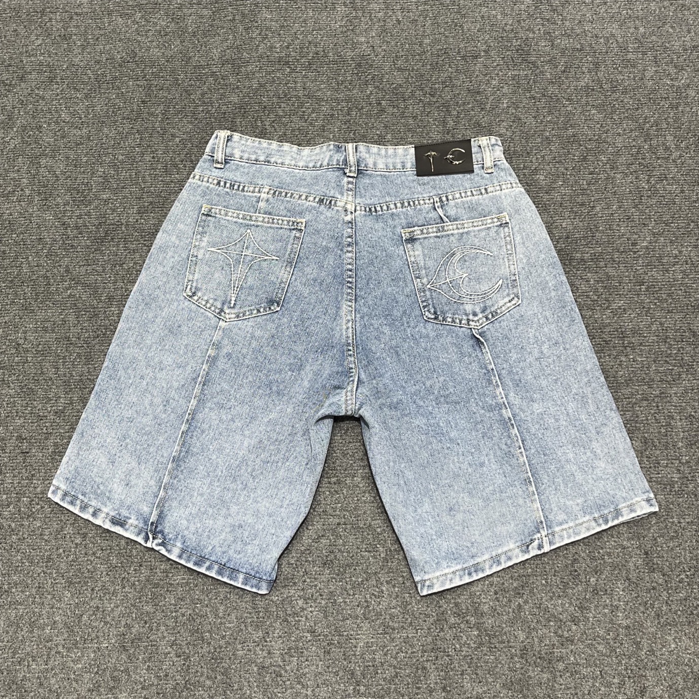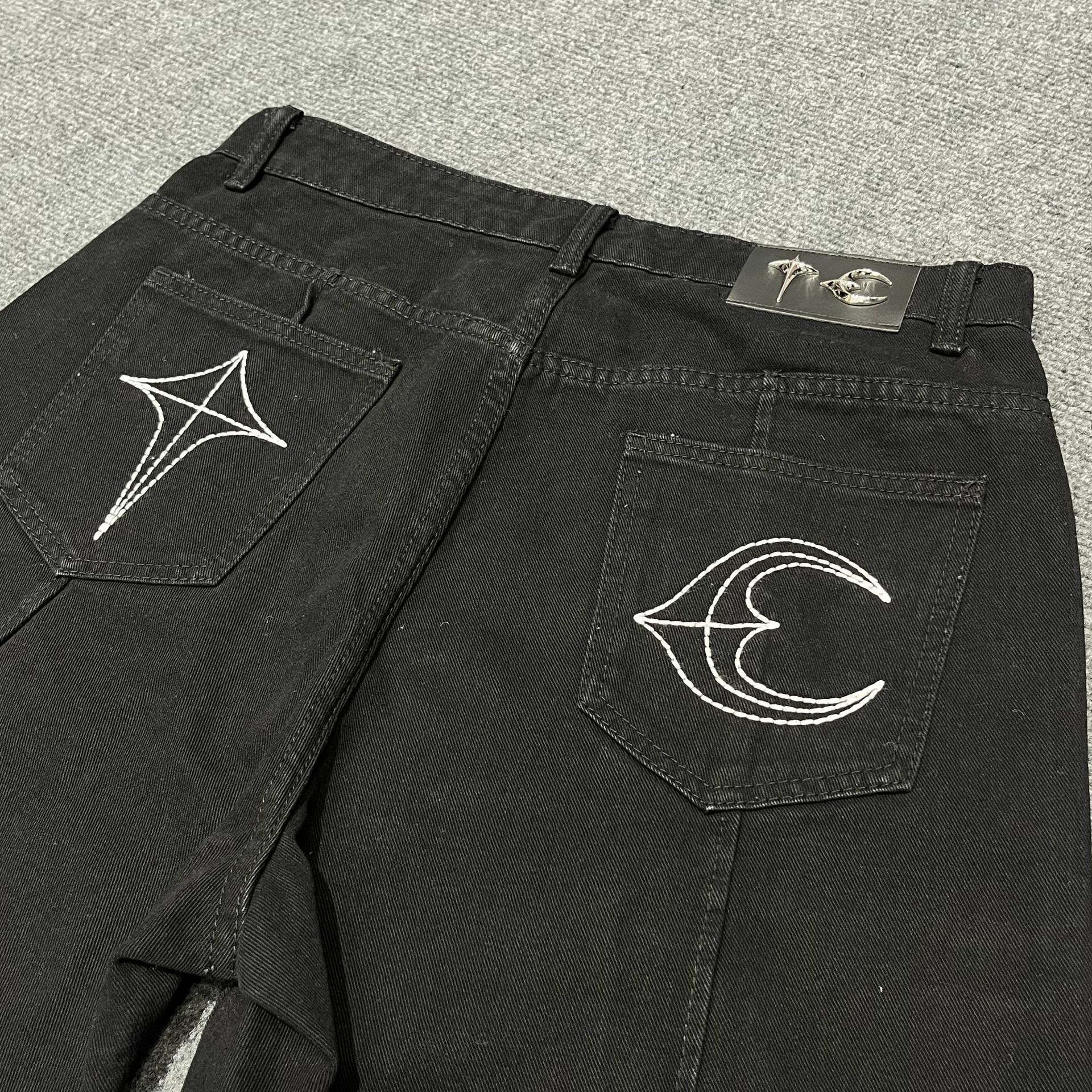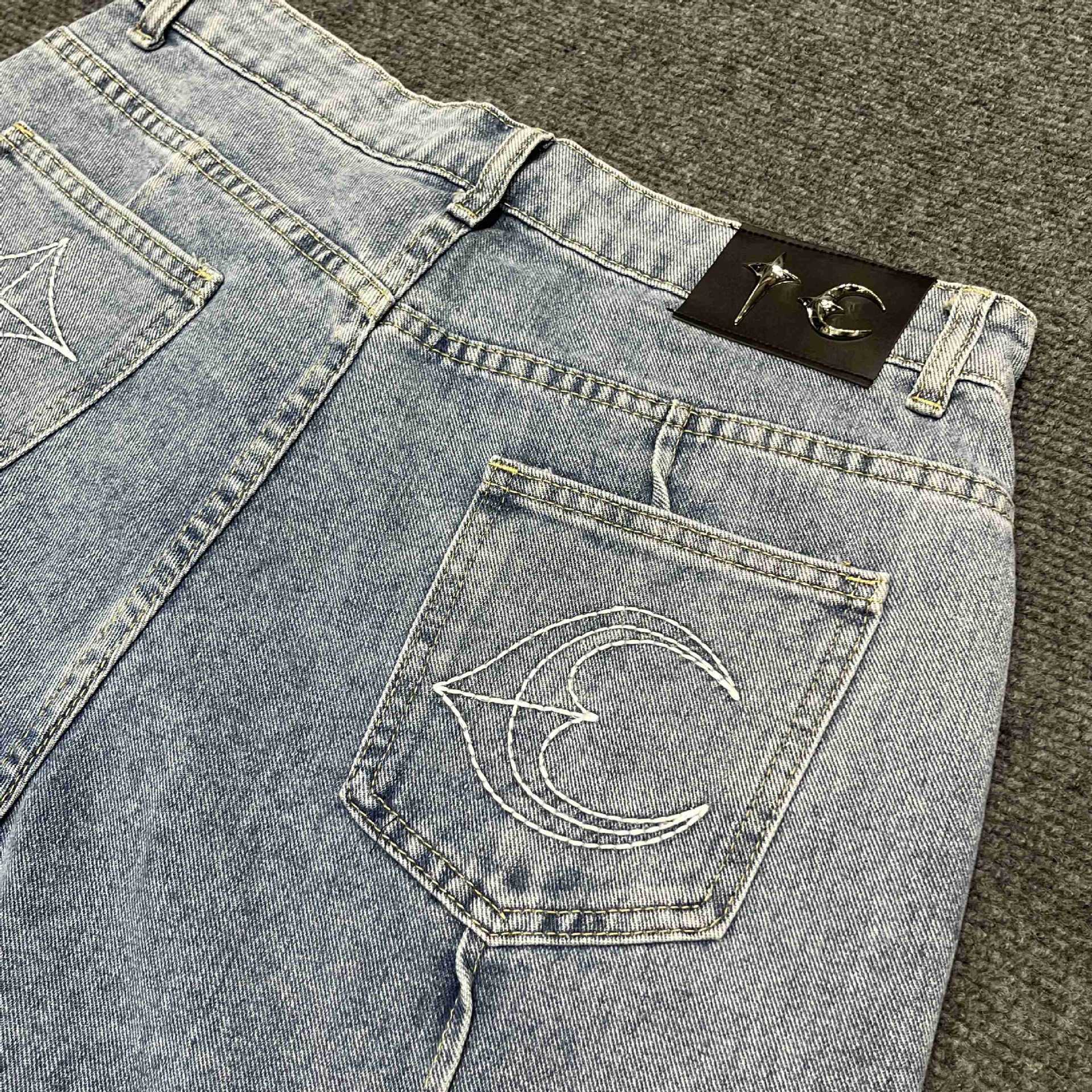 THUG CLUB JORTS 별과 달 자수 메탈 반바지 남성 하이 스트리트 힙합 캐주얼 5부 청바지 크로스보더스토어 가기
