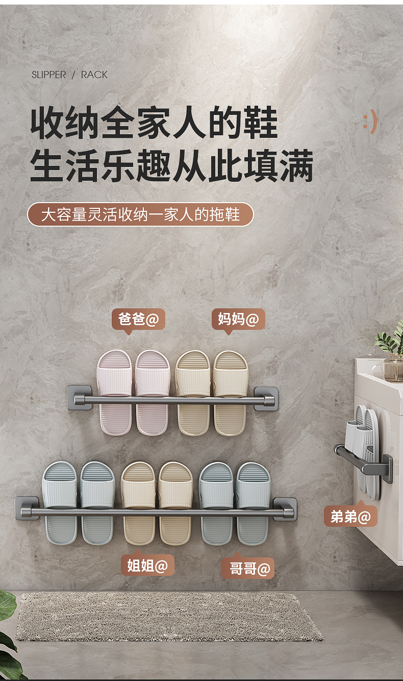 욕실 슬리퍼걸이, 구멍이 없는 욕실 수납선반, 신발수납용품, 화장실 벽걸이형 배수걸이