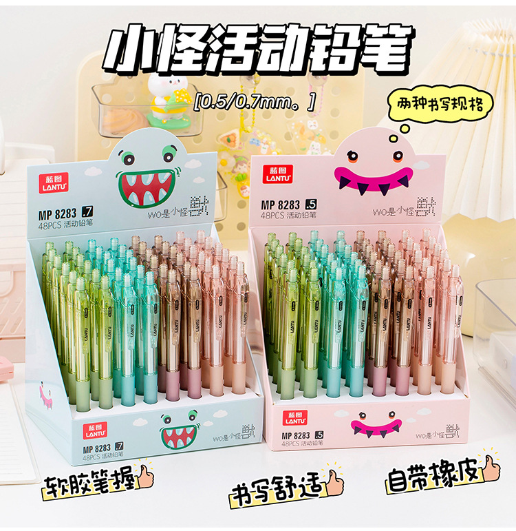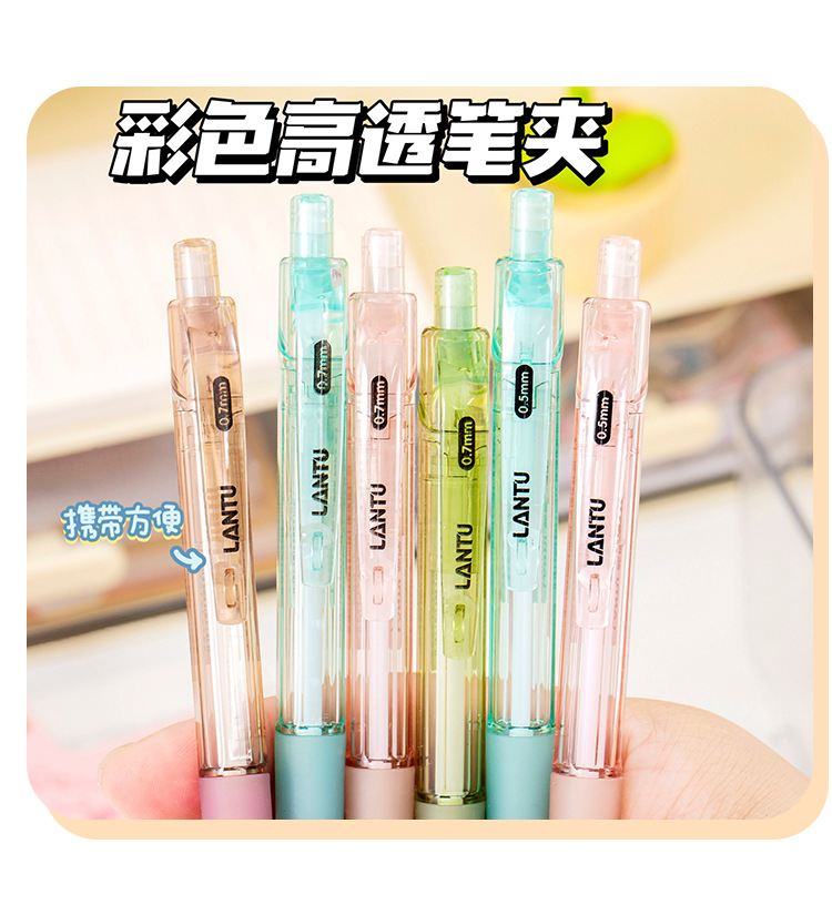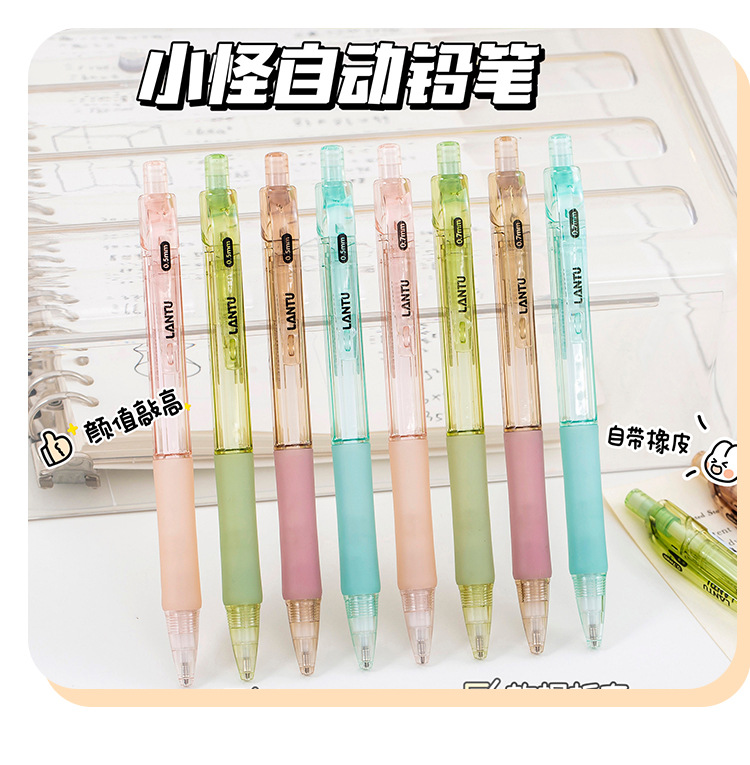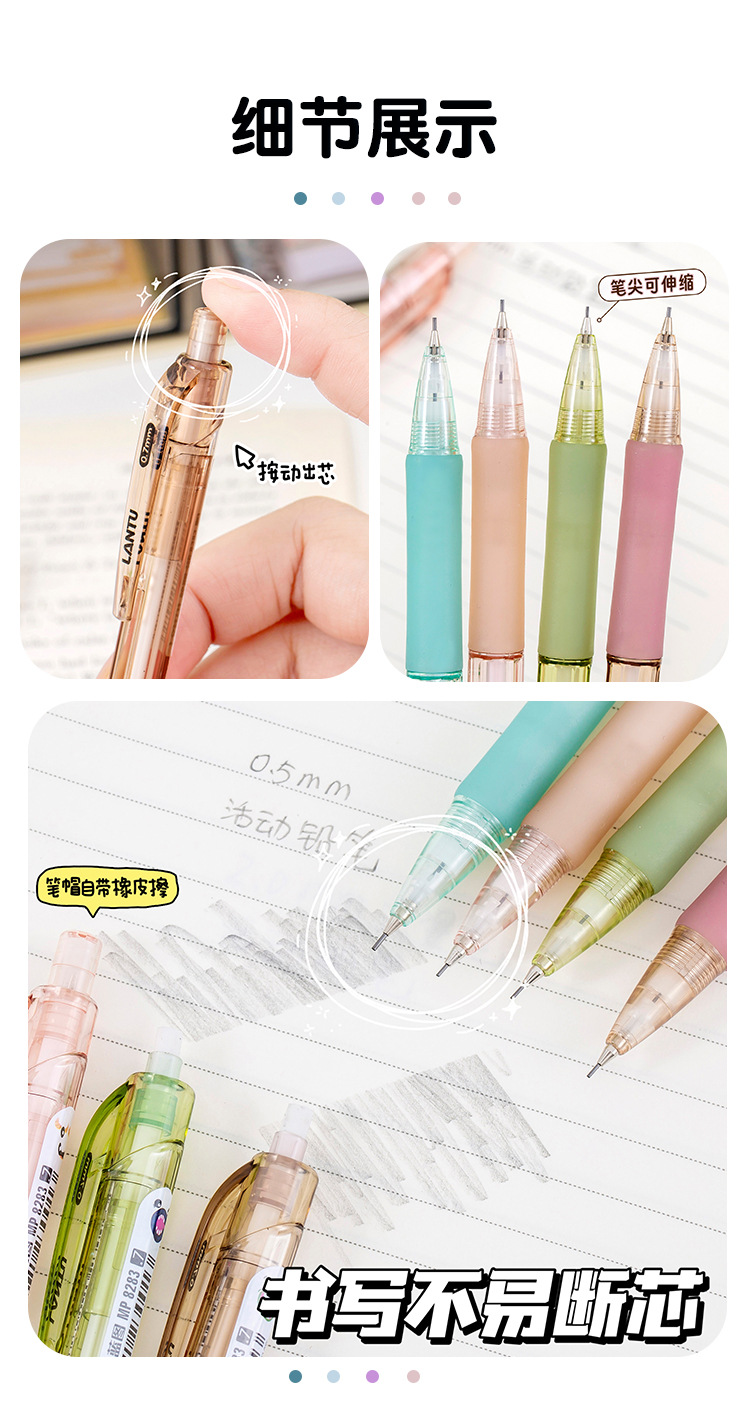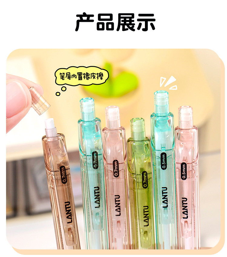 초등학생을 위한 고급스럽고 부드러운 그립감의 샤오마오 샤프펜슬, 지우개 내장 0.7/0.5 컬러 투명 푸시펜슬