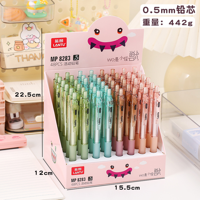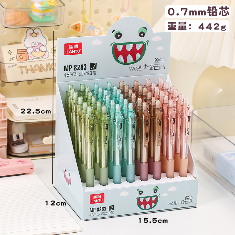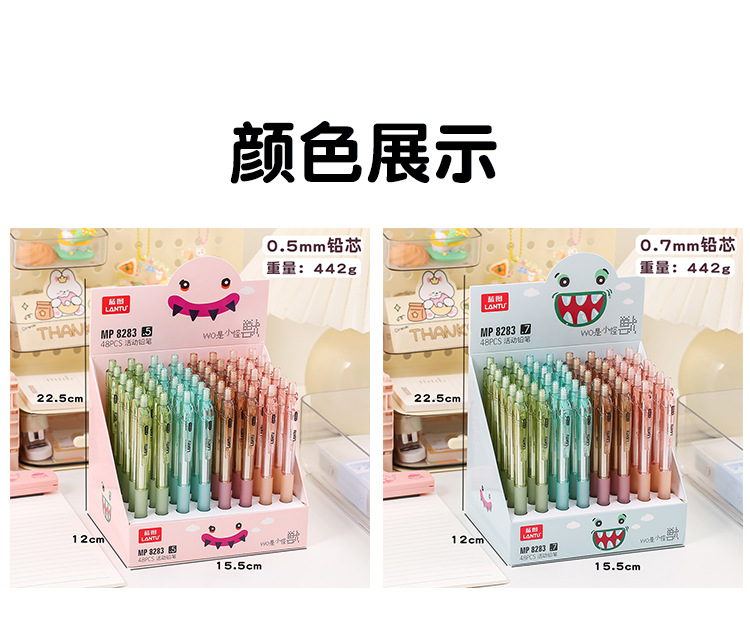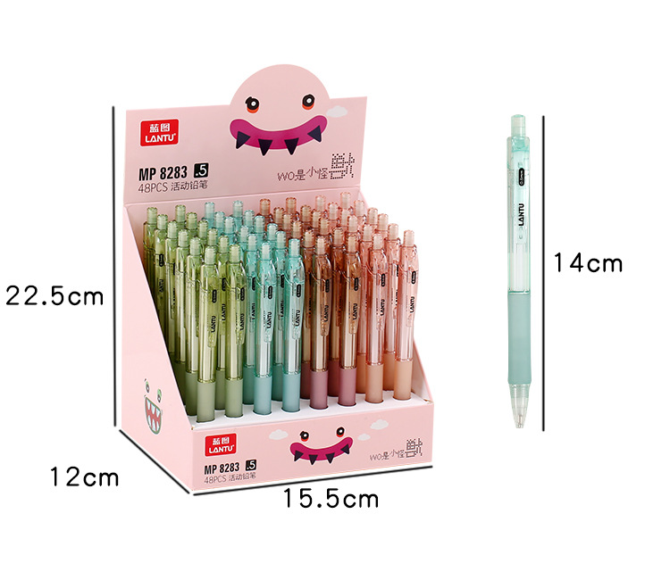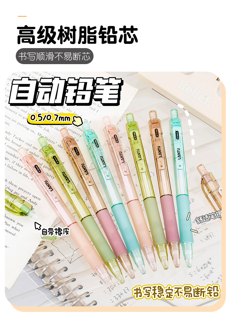 초등학생을 위한 고급스럽고 부드러운 그립감의 샤오마오 샤프펜슬, 지우개 내장 0.7/0.5 컬러 투명 푸시펜슬