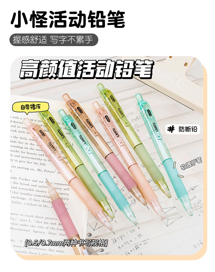 초등학생을 위한 고급스럽고 부드러운 그립감의 샤오마오 샤프펜슬, 지우개 내장 0.7/0.5 컬러 투명 푸시펜슬스토어 가기