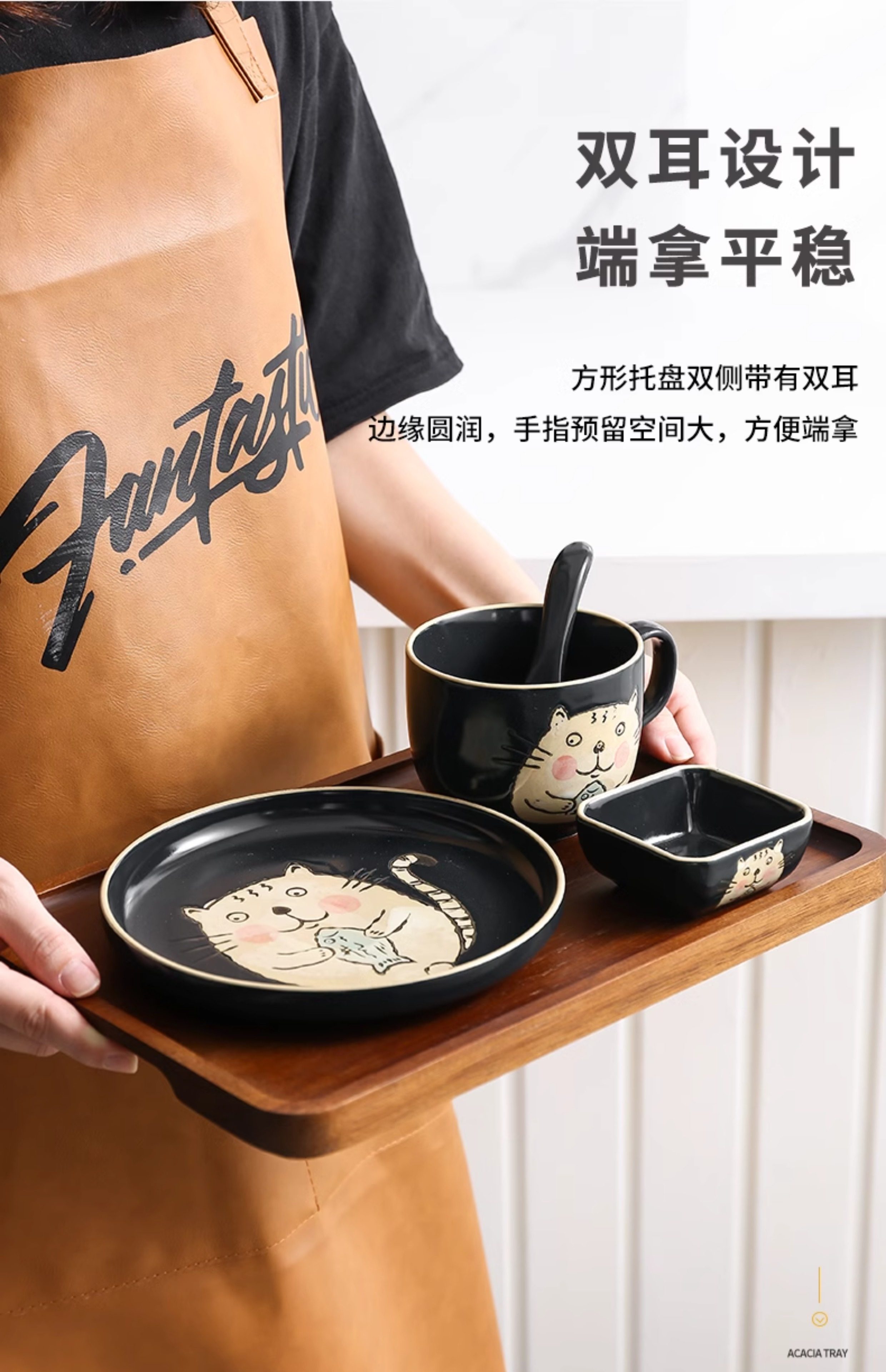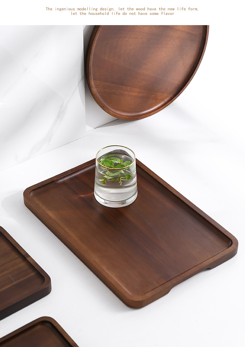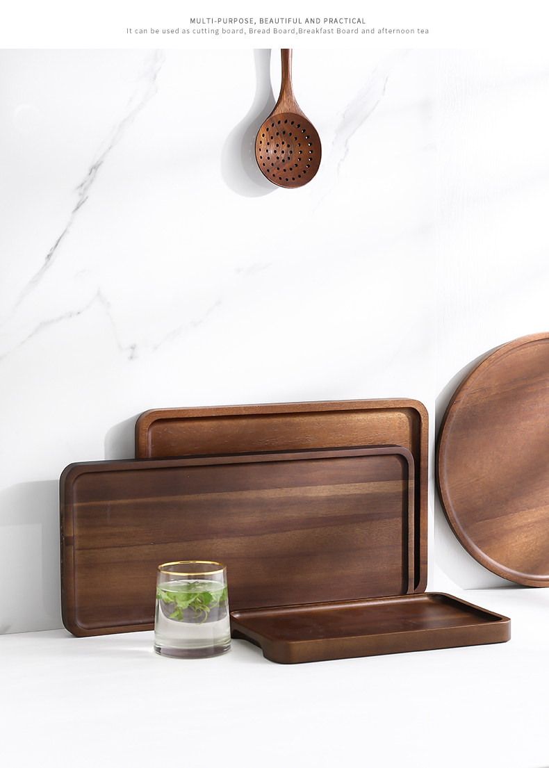 일본식 가정용 아카시아 나무 단단한 직사각형 나무 트레이 커피 컵 차 트레이 컵 트레이 보관 트레이 저녁 식사 트레이